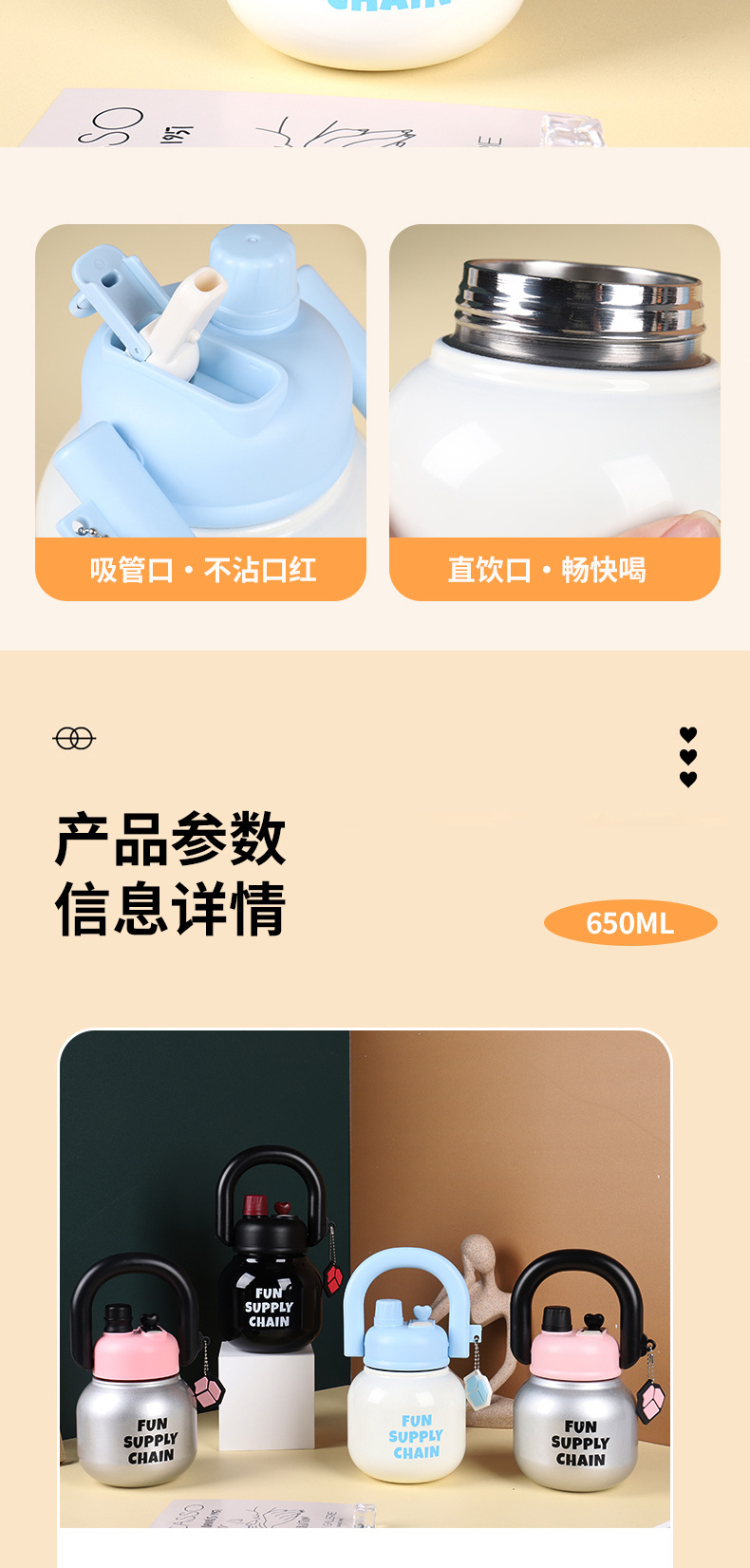 남학생과 여학생을 위한 새로운 대용량 316 스테인리스 스틸 휴대용 보온병 컵, 멋스러운 더블 빨대가 달린 대용량 컵스토어 가기