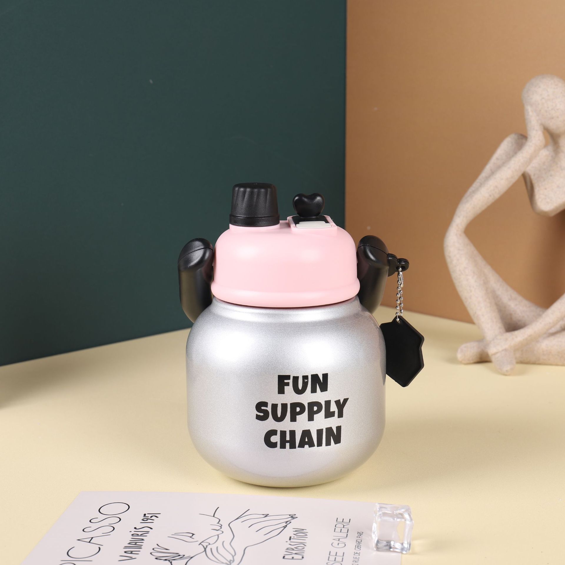 남학생과 여학생을 위한 새로운 대용량 316 스테인리스 스틸 휴대용 보온병 컵, 멋스러운 더블 빨대가 달린 대용량 컵
