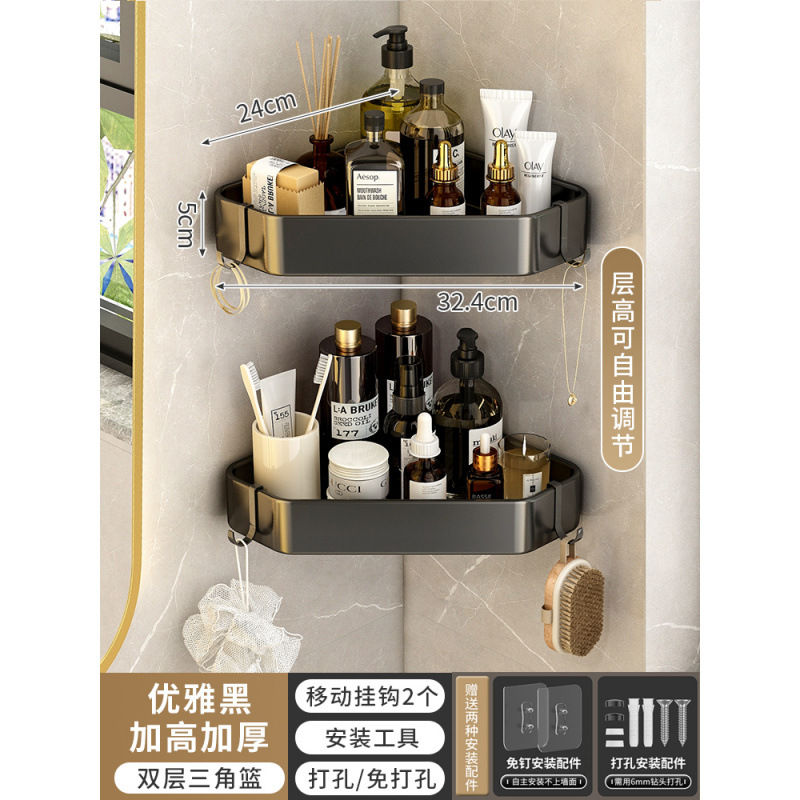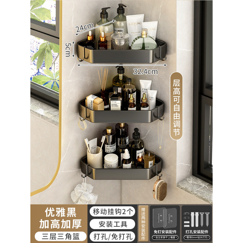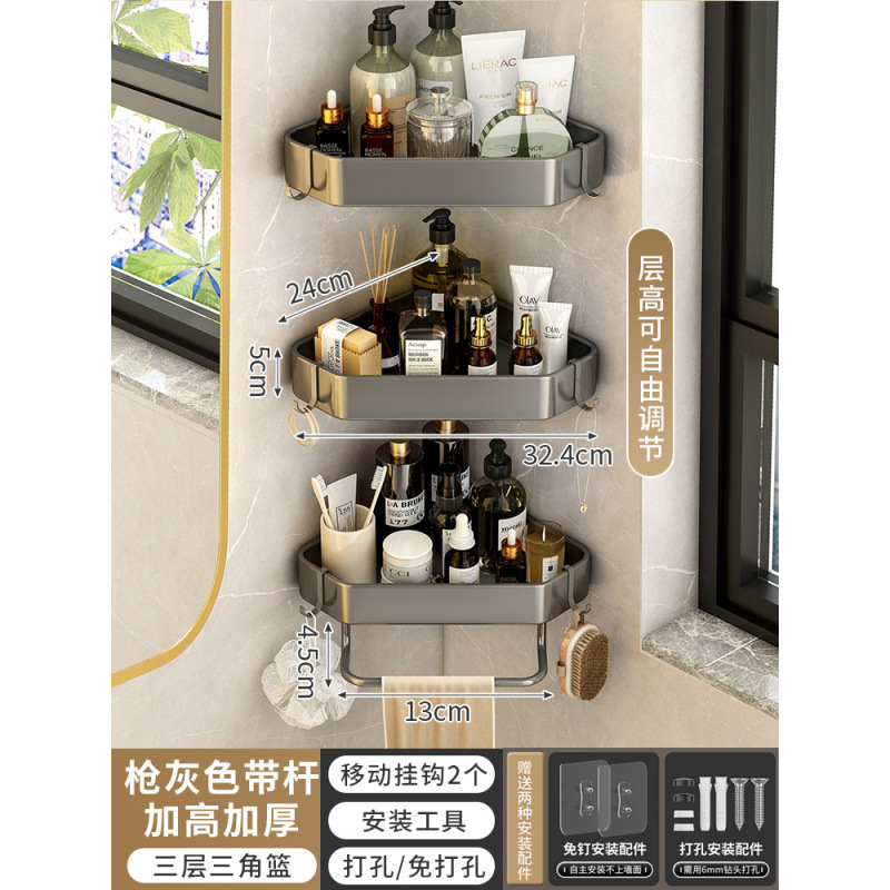 총 회색 욕실 보관 랙 욕실 삼각형 벽 교수형 천공되지 않은 코너 스테인레스 스틸 세척 테이블 벽 교수형 저장 랙스토어 가기