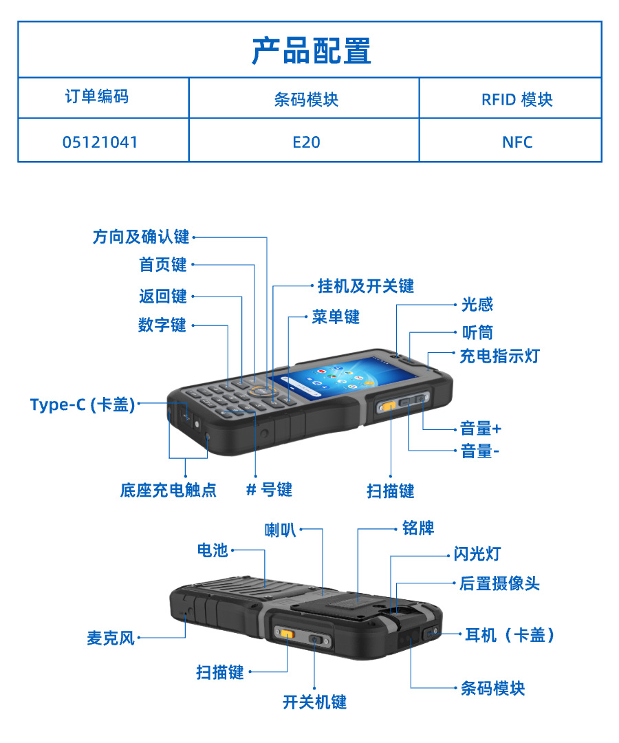 • 6+64G+회색+540*960+500nits+E20+NFC