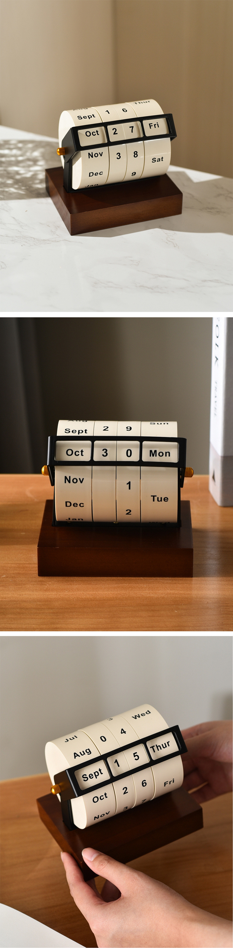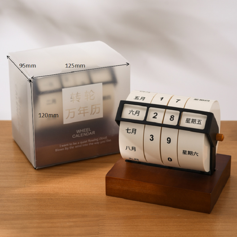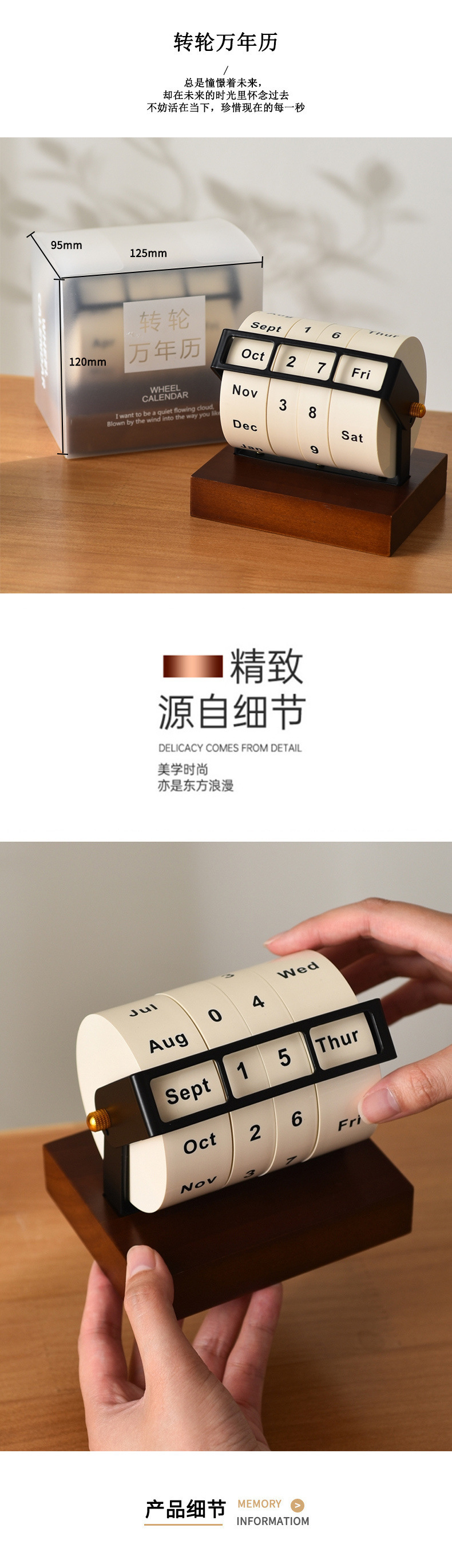 레트로 휠 영구 캘린더 크리에이티브 회전 캘린더 고급 센스 캘린더 오피스 데스크탑 장식 데스크 캘린더