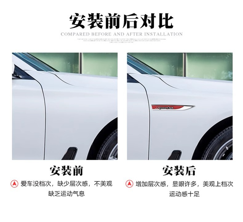 자동차 펜더 블레이드 장식 스티커, 상어 헤드 사이드 에어 벤트 스티커, 도어 맞춤형 수정 특수 금속 자동차 스티커스토어 가기