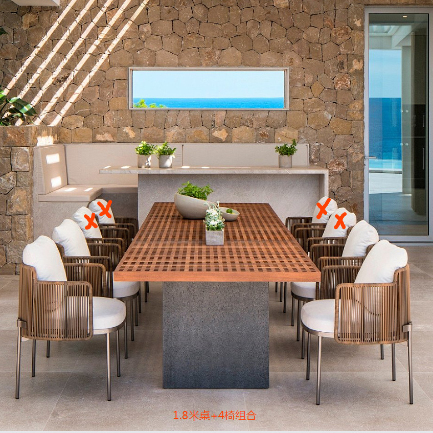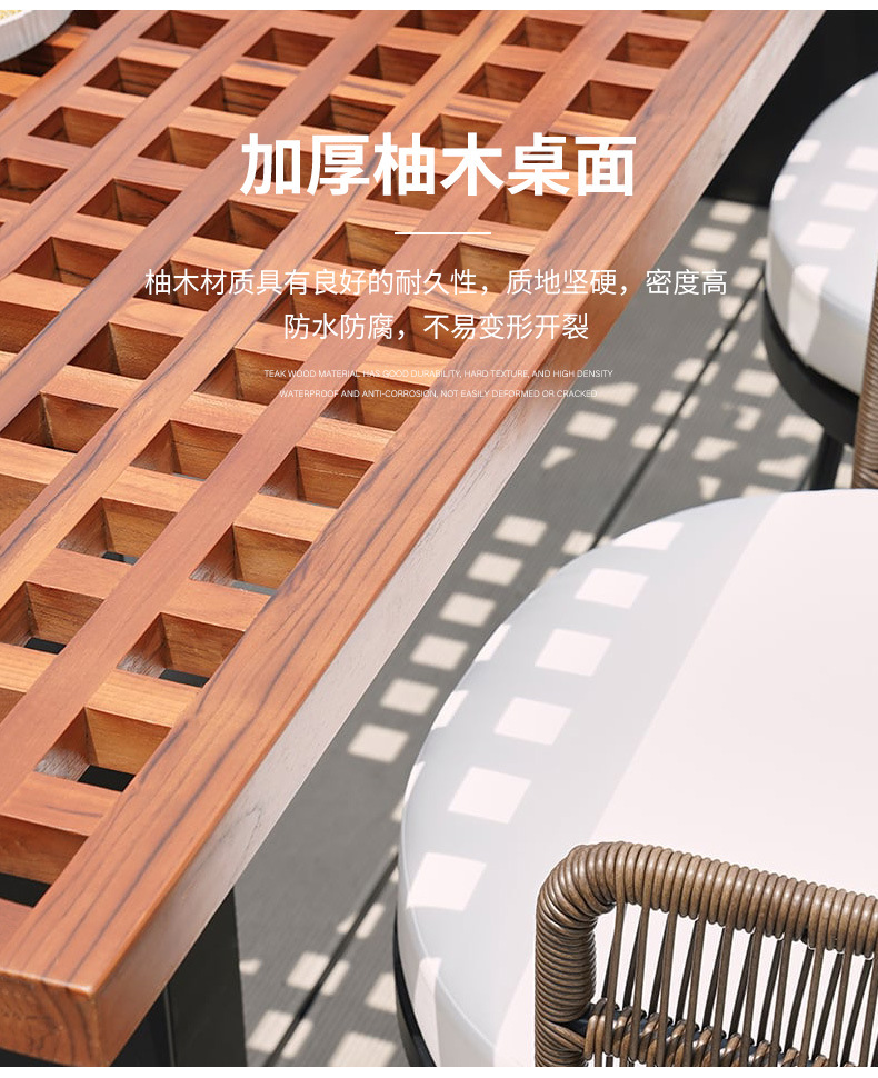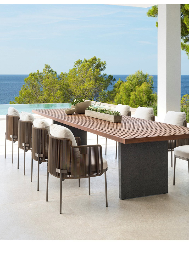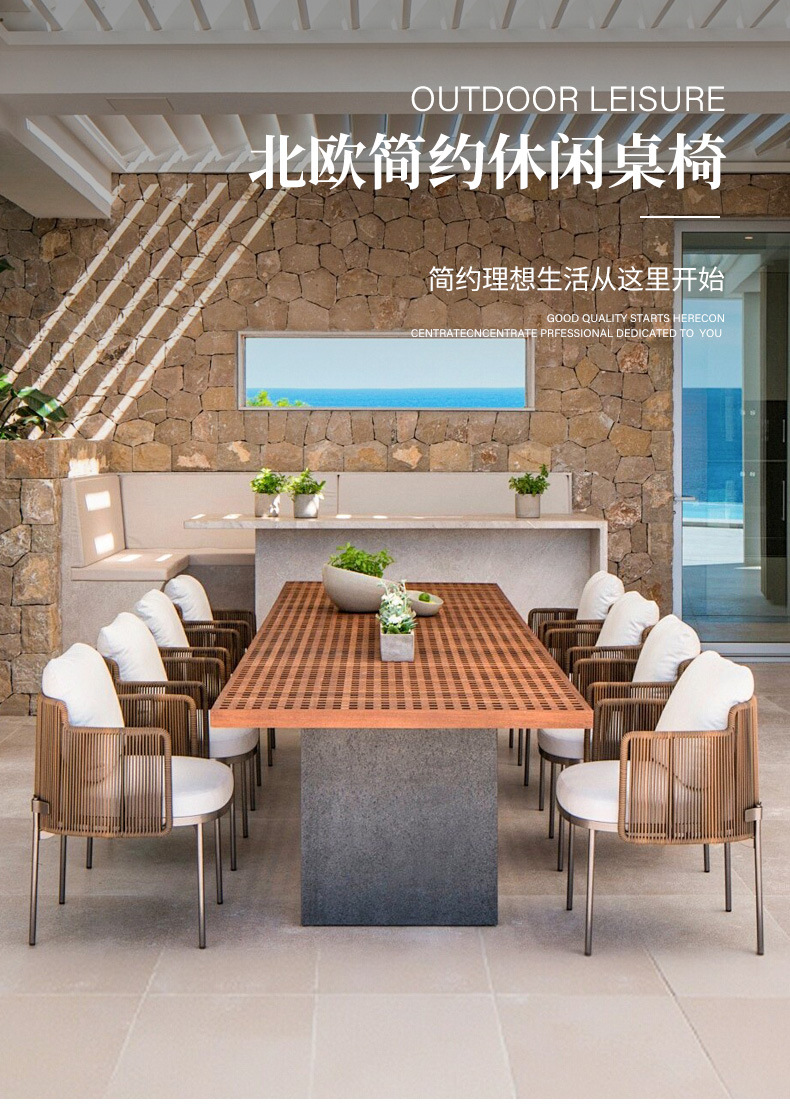 야외 안뜰 테이블과 의자 조합 야외 정원 발코니 야외 빌라 솔리드 우드 다이닝 테이블 및 의자 레저 호텔 선샤인 룸