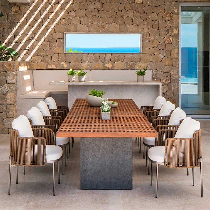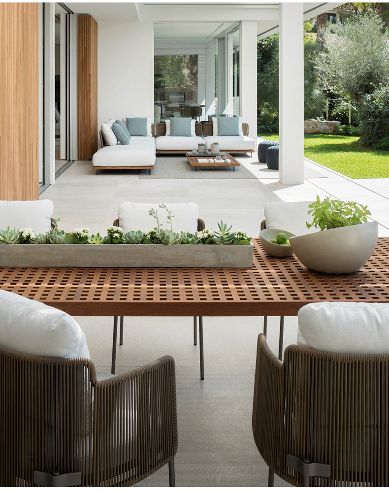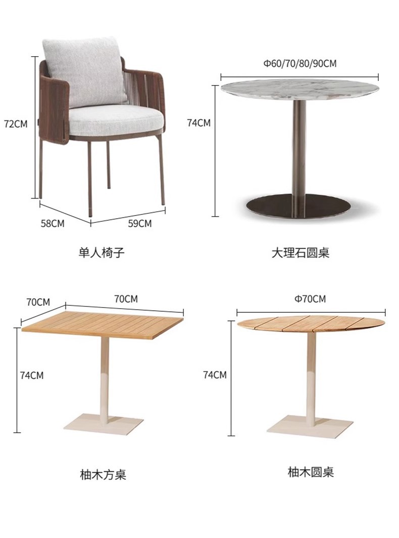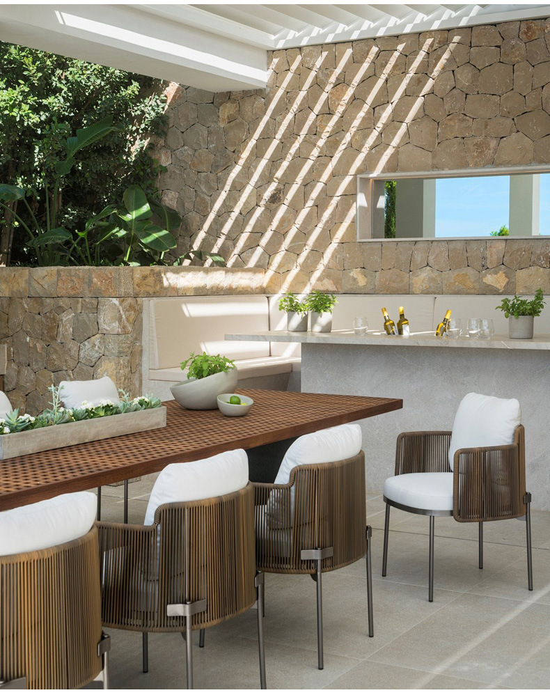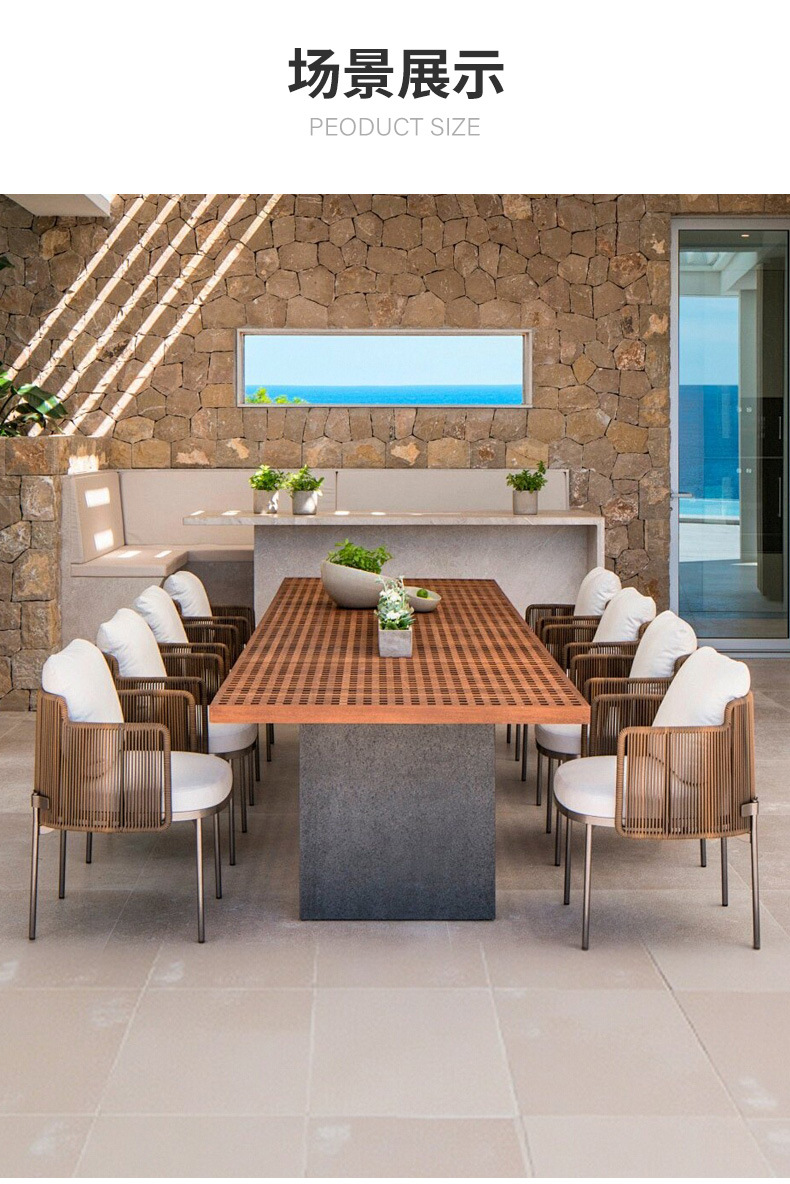 야외 안뜰 테이블과 의자 조합 야외 정원 발코니 야외 빌라 솔리드 우드 다이닝 테이블 및 의자 레저 호텔 선샤인 룸
