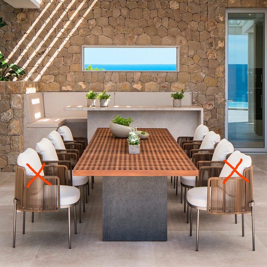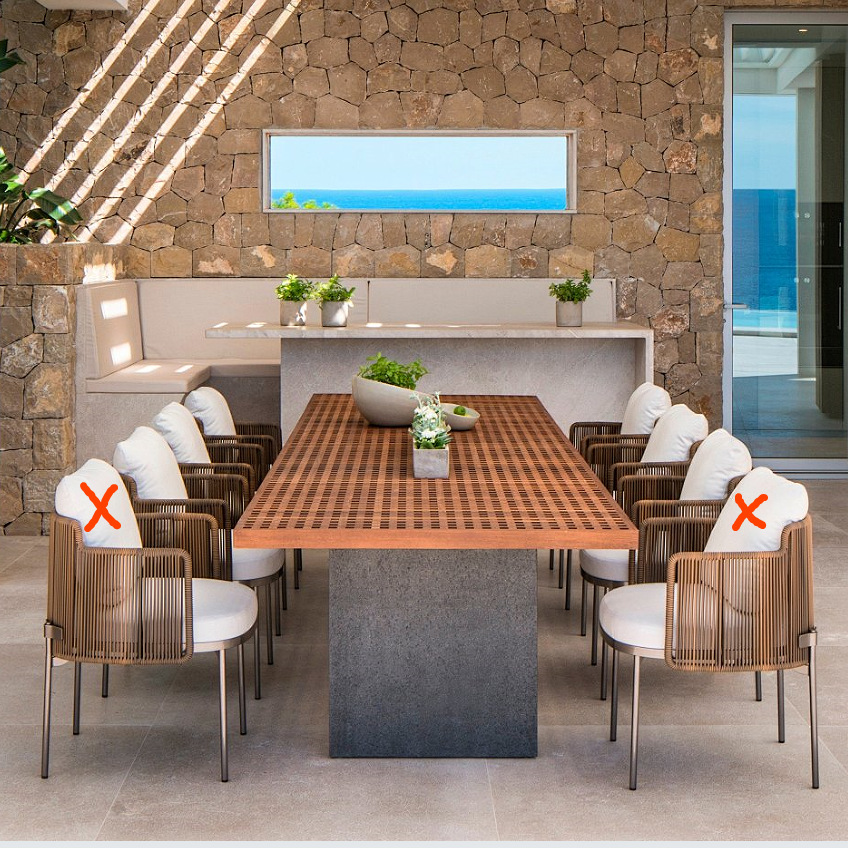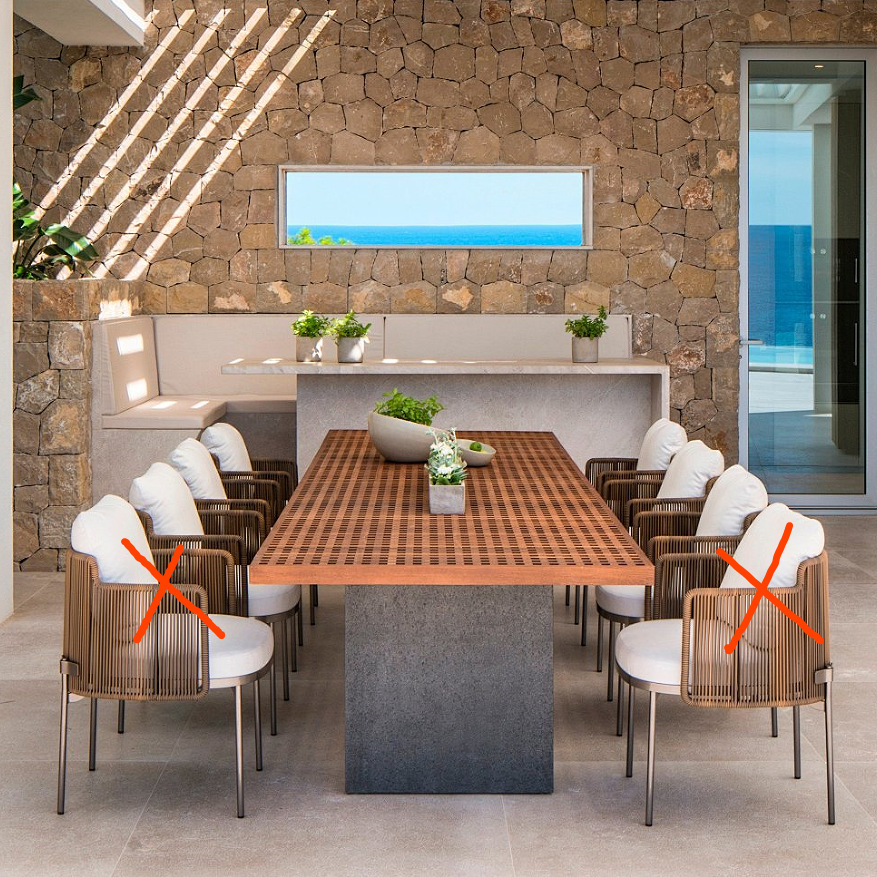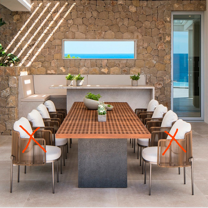 • 3m 티크 테이블 + 의자 6개 조합