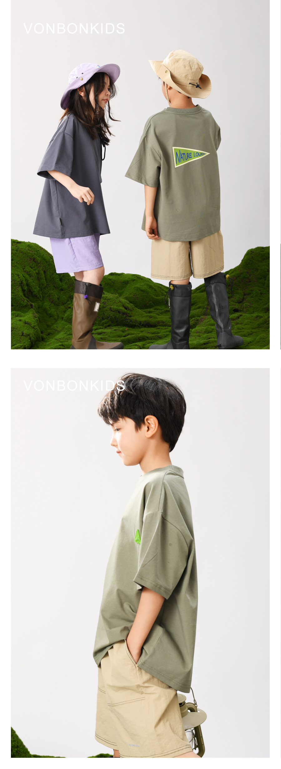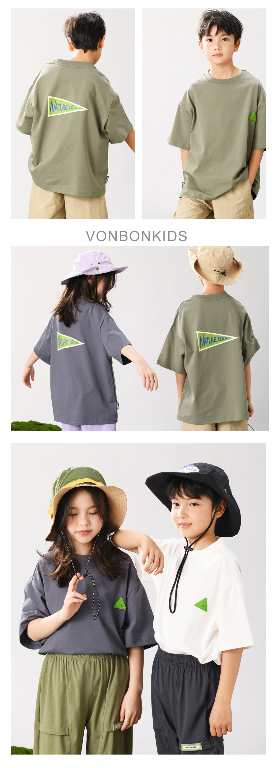 Vonbonkids 브랜드 어린이 등산 야외 Solona 순수 코튼 느슨한 소년 티셔츠 여름 소녀 반팔스토어 가기