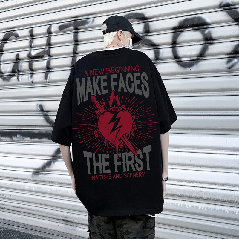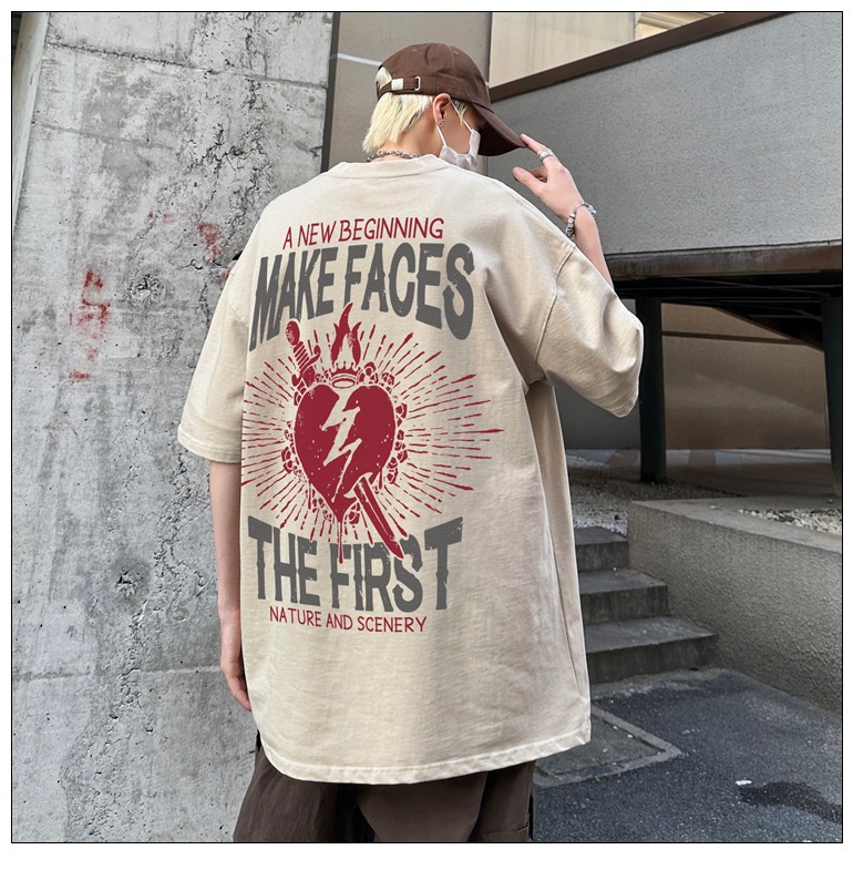 사랑 낙서 인쇄 반팔 티셔츠 남성 여름 프로필 오버 사이즈 아메리칸 스타일 레트로 탑 패션 브랜드 하프 슬리브스토어 가기