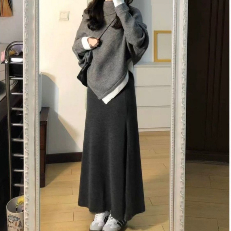 • 불규칙한 스웨터 + 모직 스커트 [투피스 슈트]