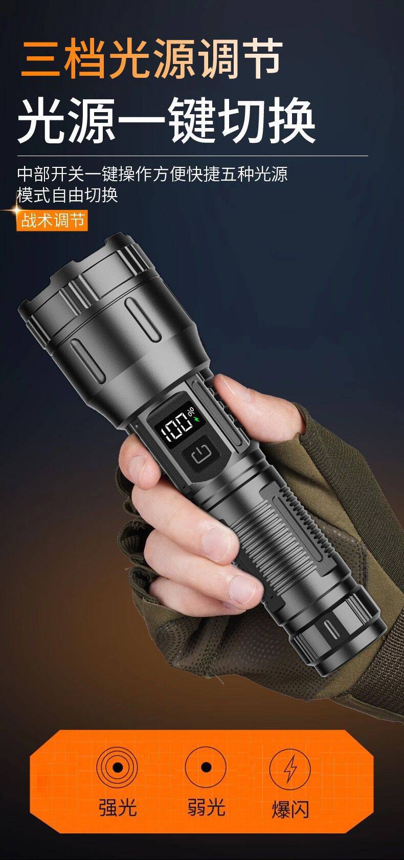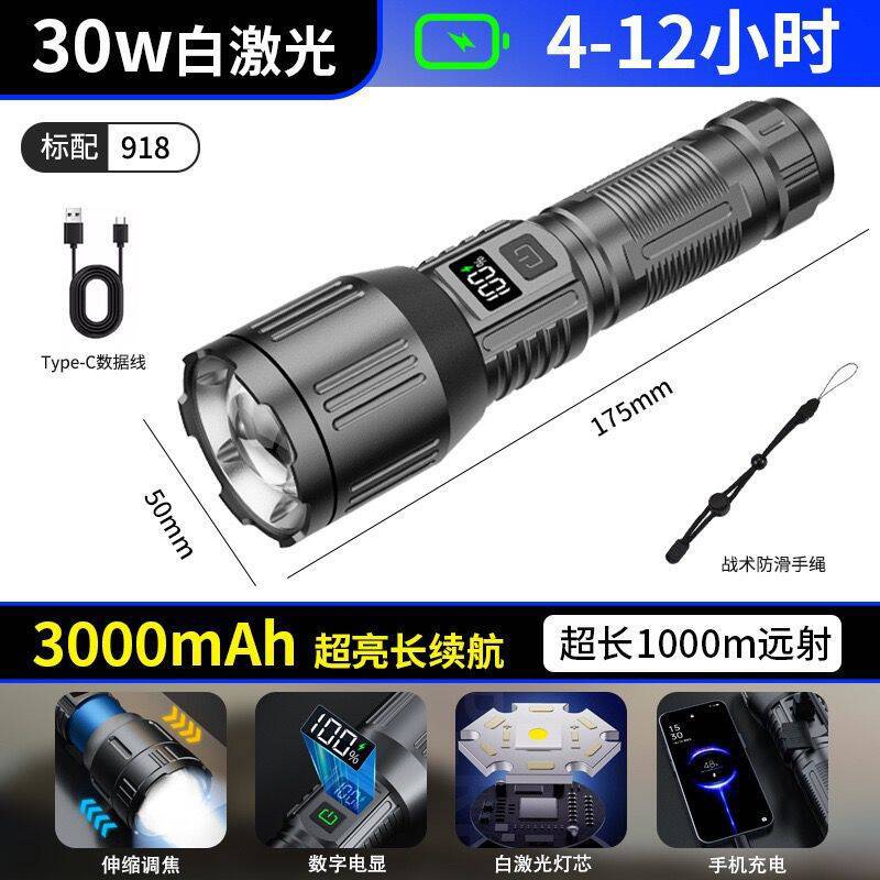 국경 간 야외 순찰 스포트라이트 장거리 손전등 디지털 디스플레이 충전 출력 망원경 줌 손전등 도매스토어 가기