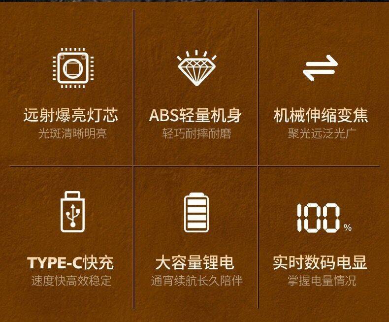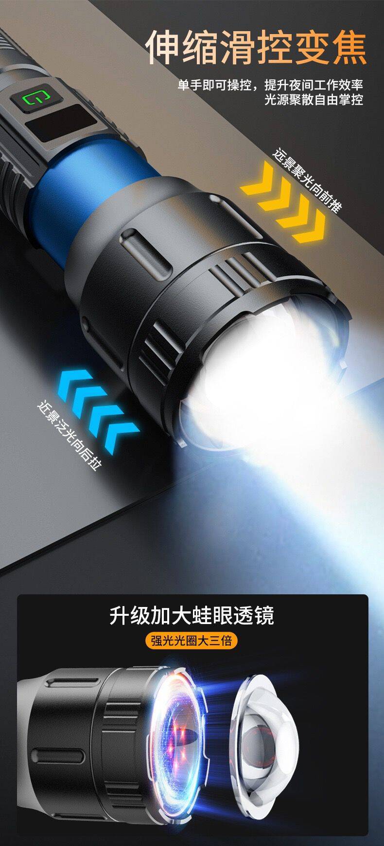 국경 간 야외 순찰 스포트라이트 장거리 손전등 디지털 디스플레이 충전 출력 망원경 줌 손전등 도매