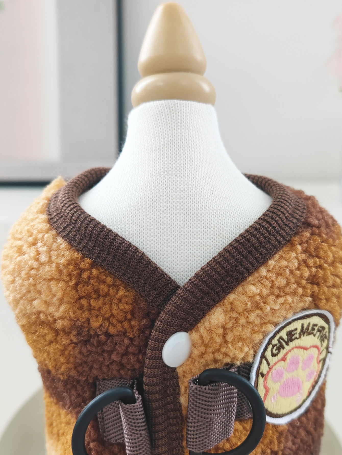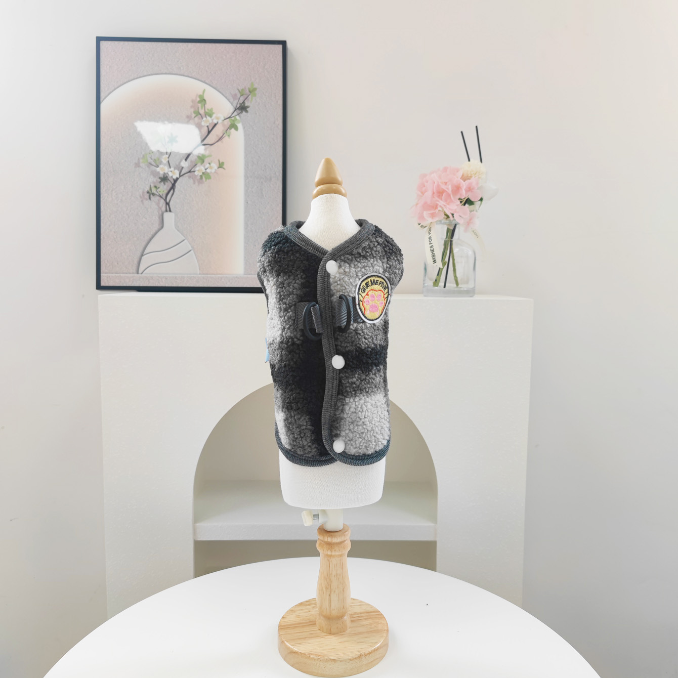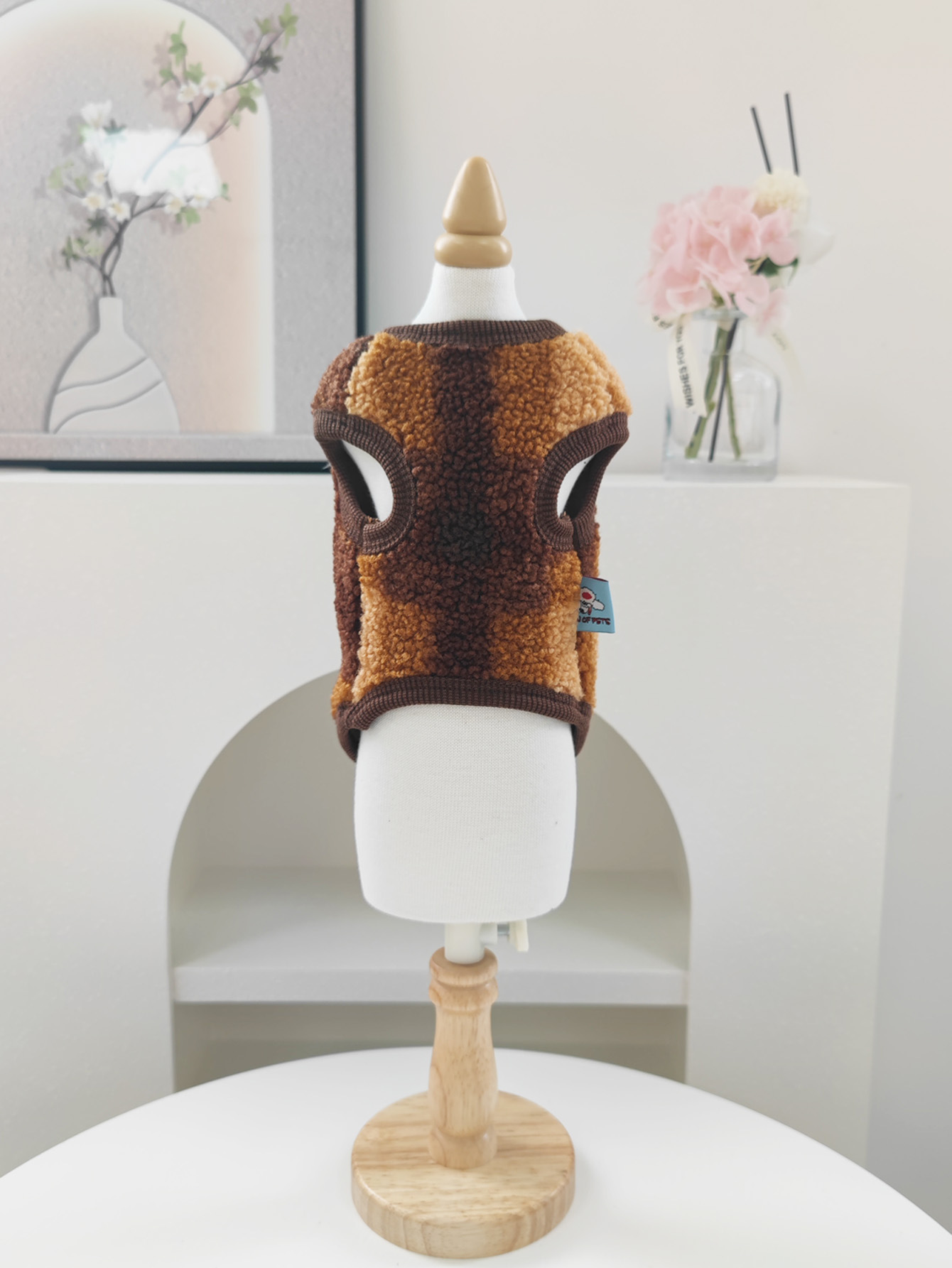 개 고양이 옷 격자 무늬 모직 토끼 모피 조끼 더블 레이어 따뜻한 버클 견인 로프 짧은 VIP스토어 가기