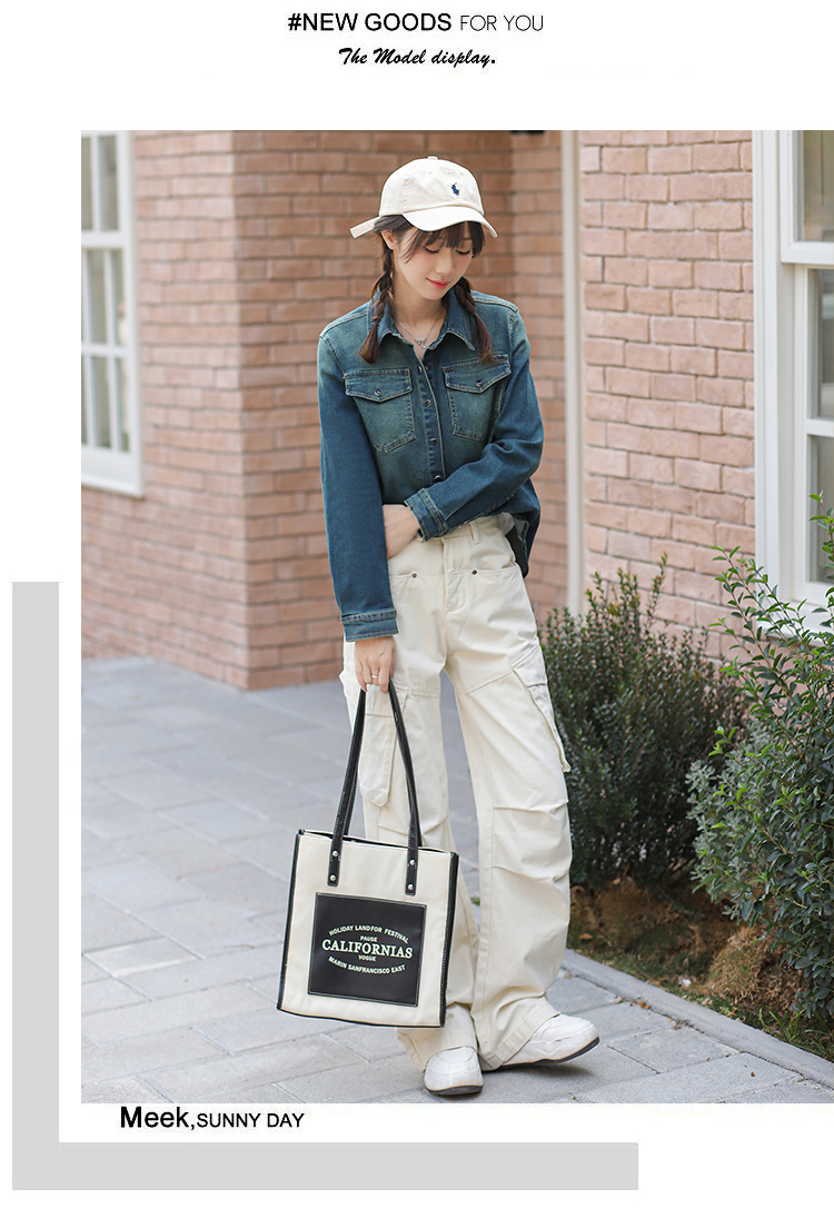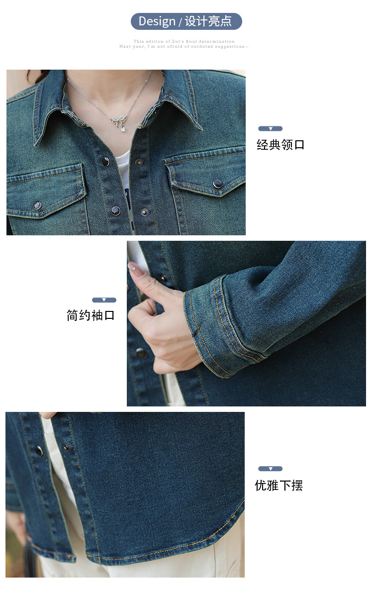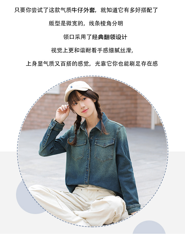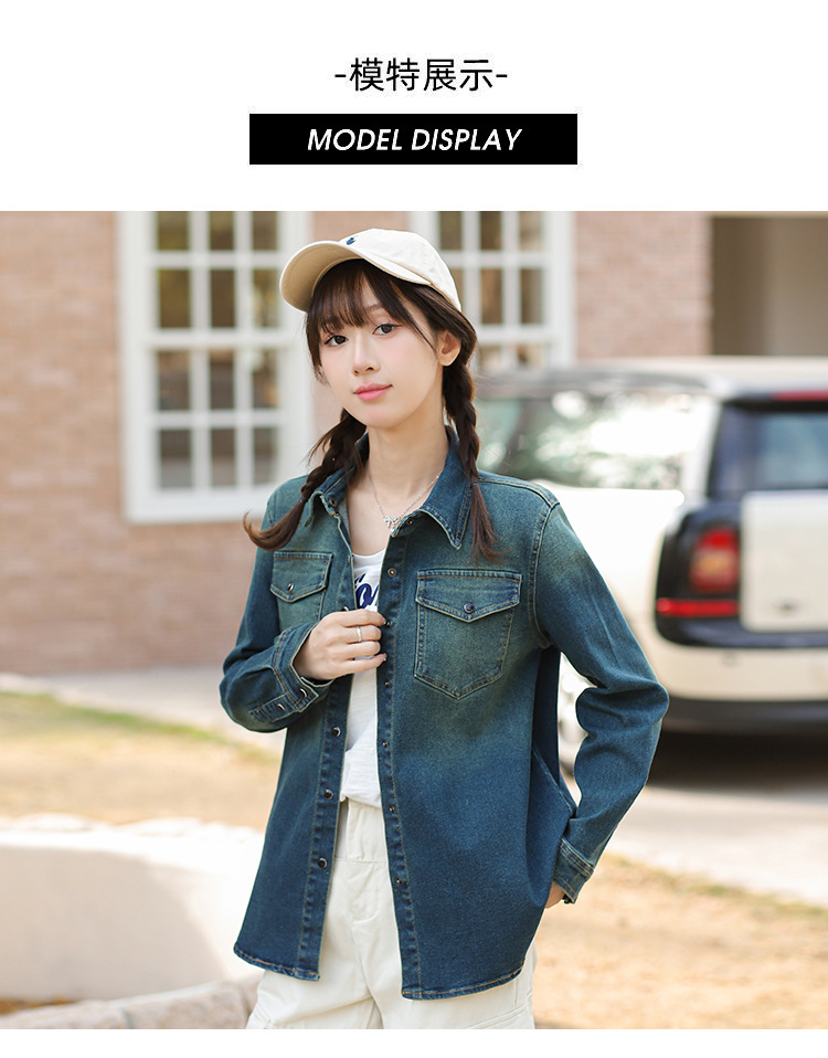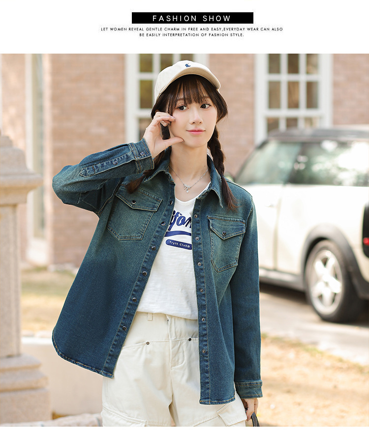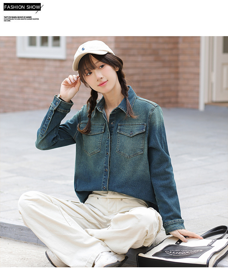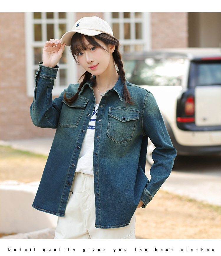 봄 2025 새로운 한국 스타일 복고풍 세련된 디자인 센스 포켓 엘 긴 소매 데님 셔츠스토어 가기
