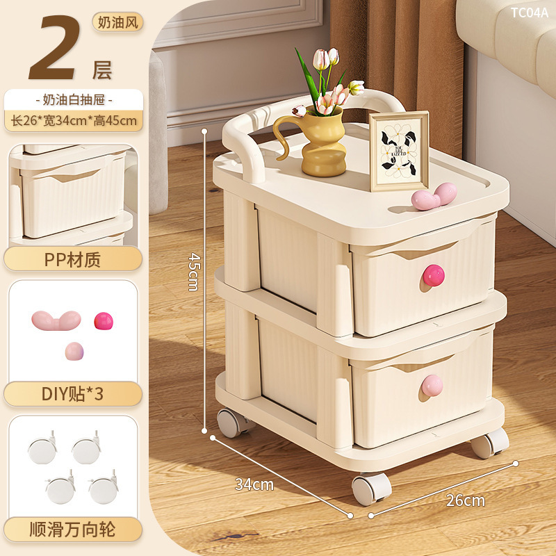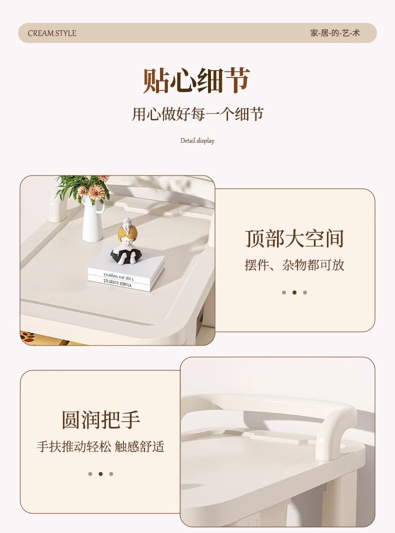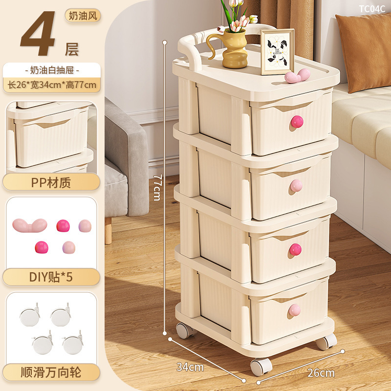 크림 스타일 서랍 형 베이비 스토리지 카트 다층 모바일 방진 거실 침실 장난감 스낵 스토리지 랙
