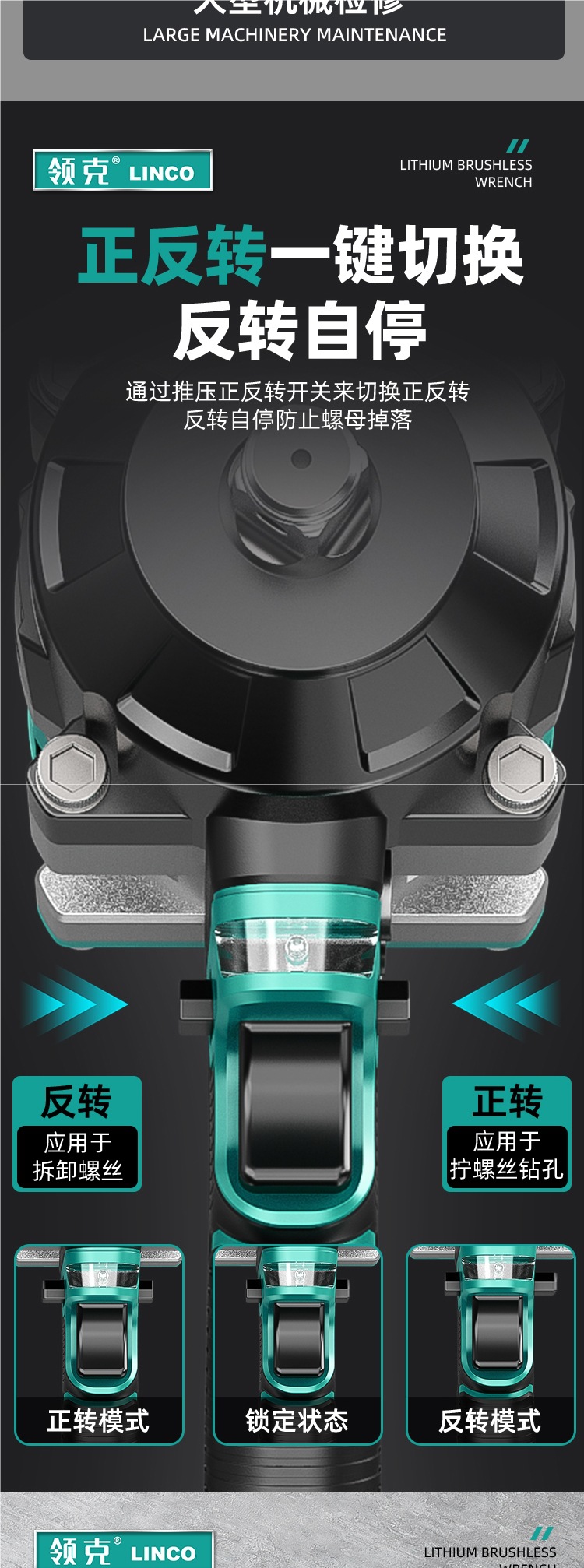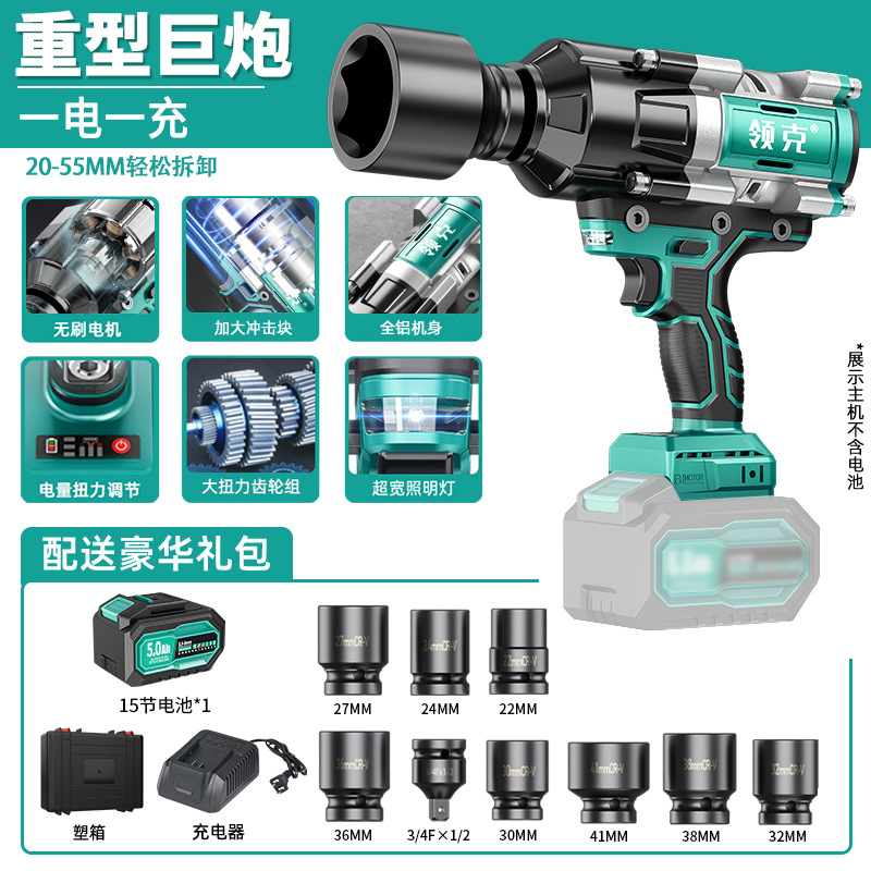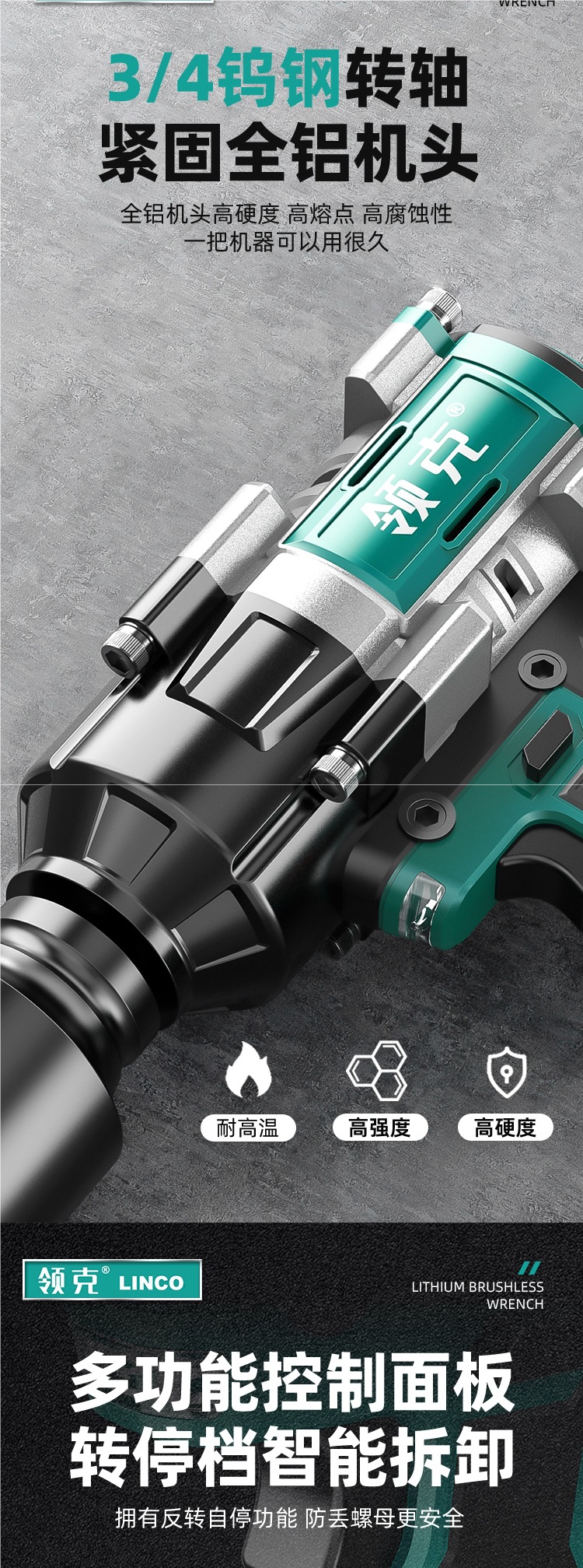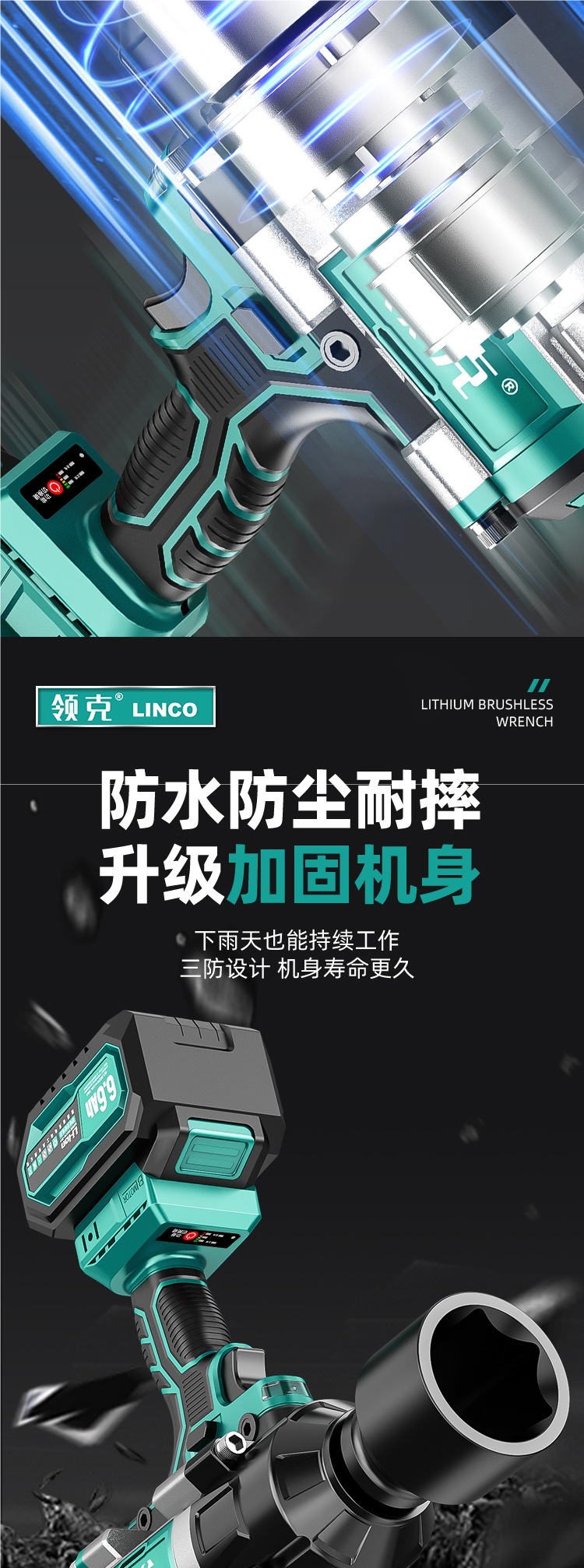 Lingke 오버로드 렌치 자동차 수리 타워 크레인 브러시리스 리튬 배터리 멈출 수없는 대형 토크 전기 렌치 특수 에어 건