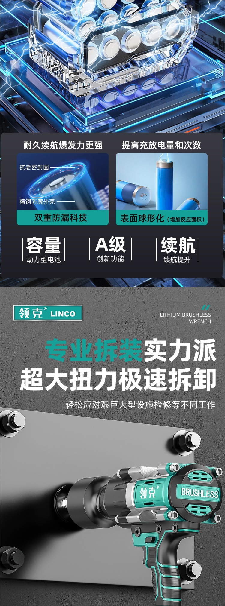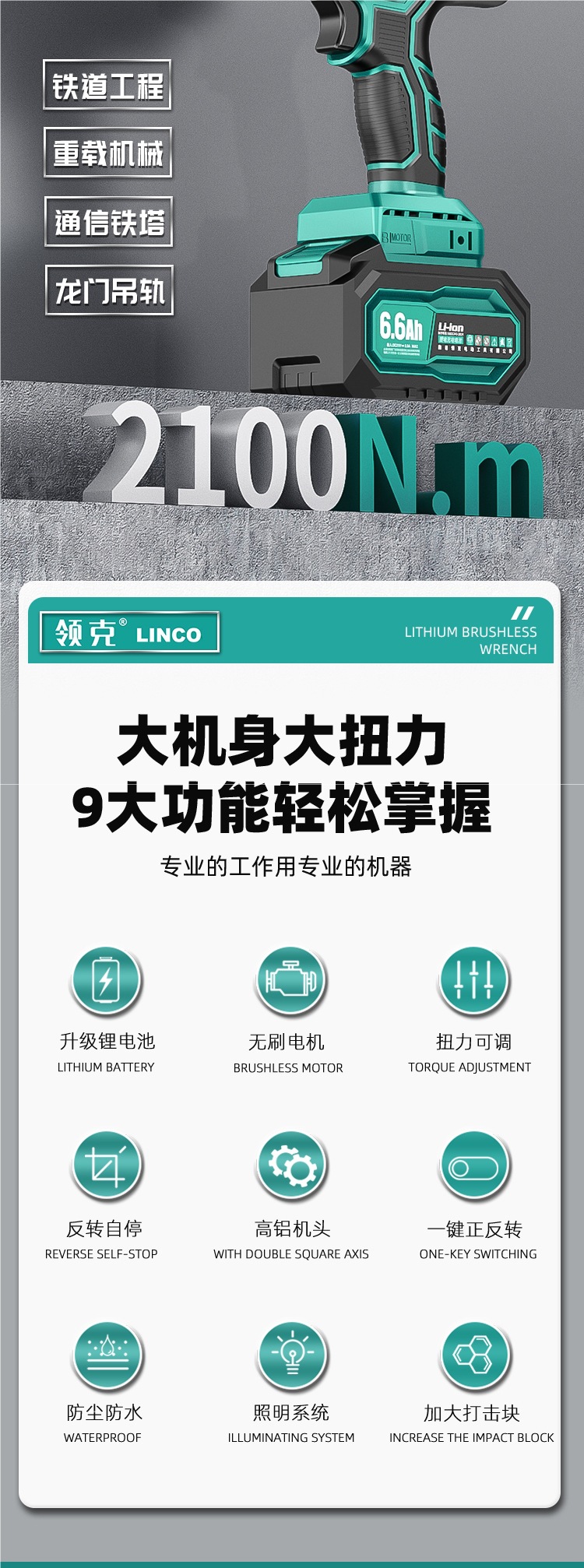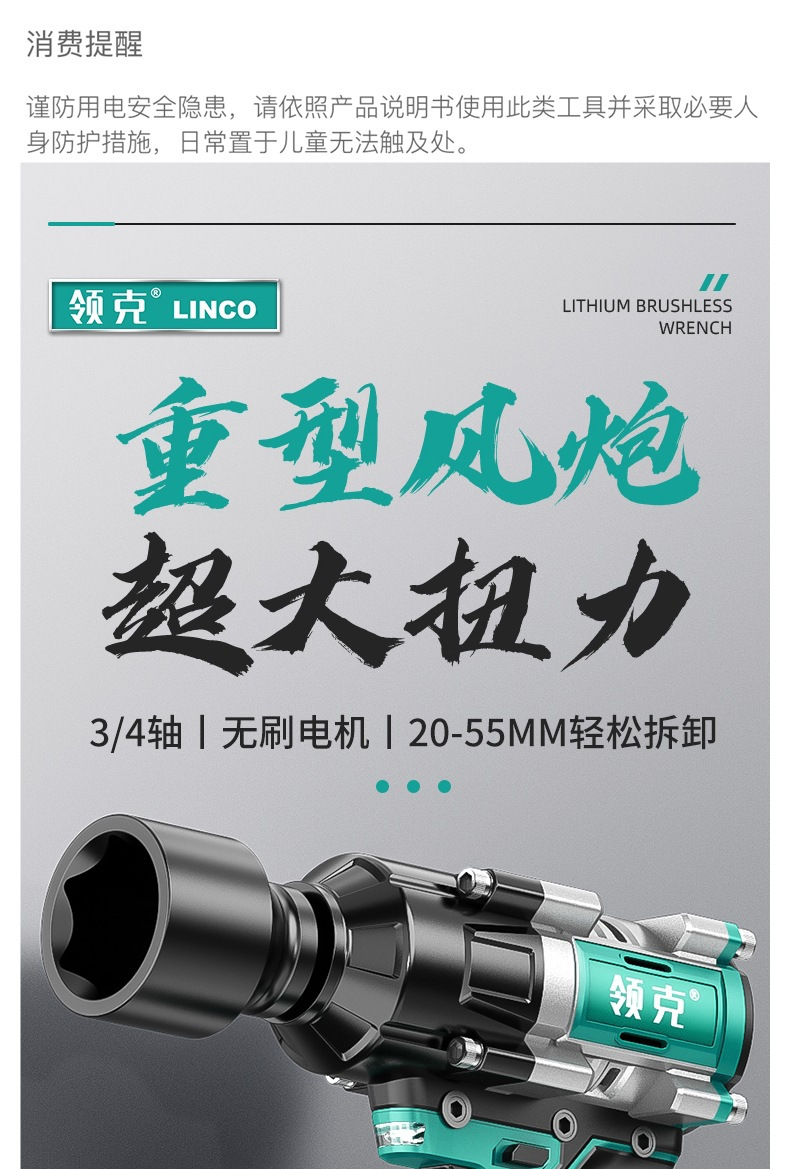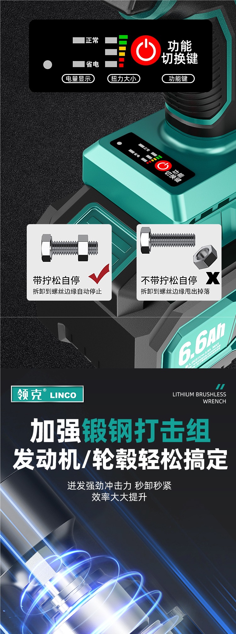 Lingke 오버로드 렌치 자동차 수리 타워 크레인 브러시리스 리튬 배터리 멈출 수없는 대형 토크 전기 렌치 특수 에어 건