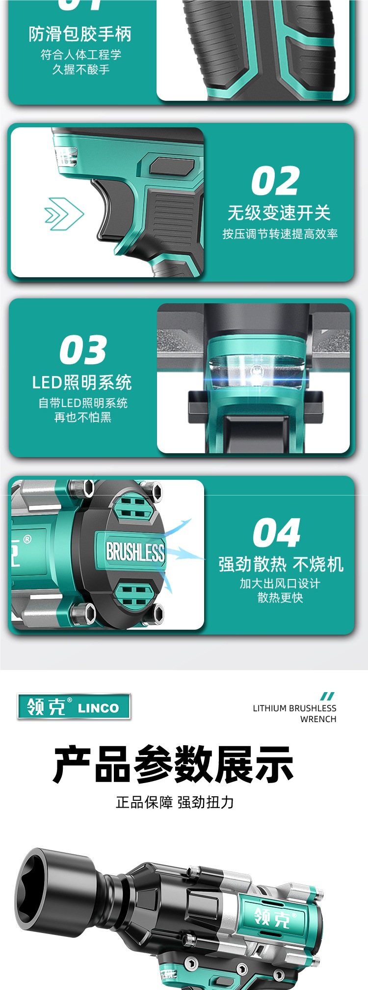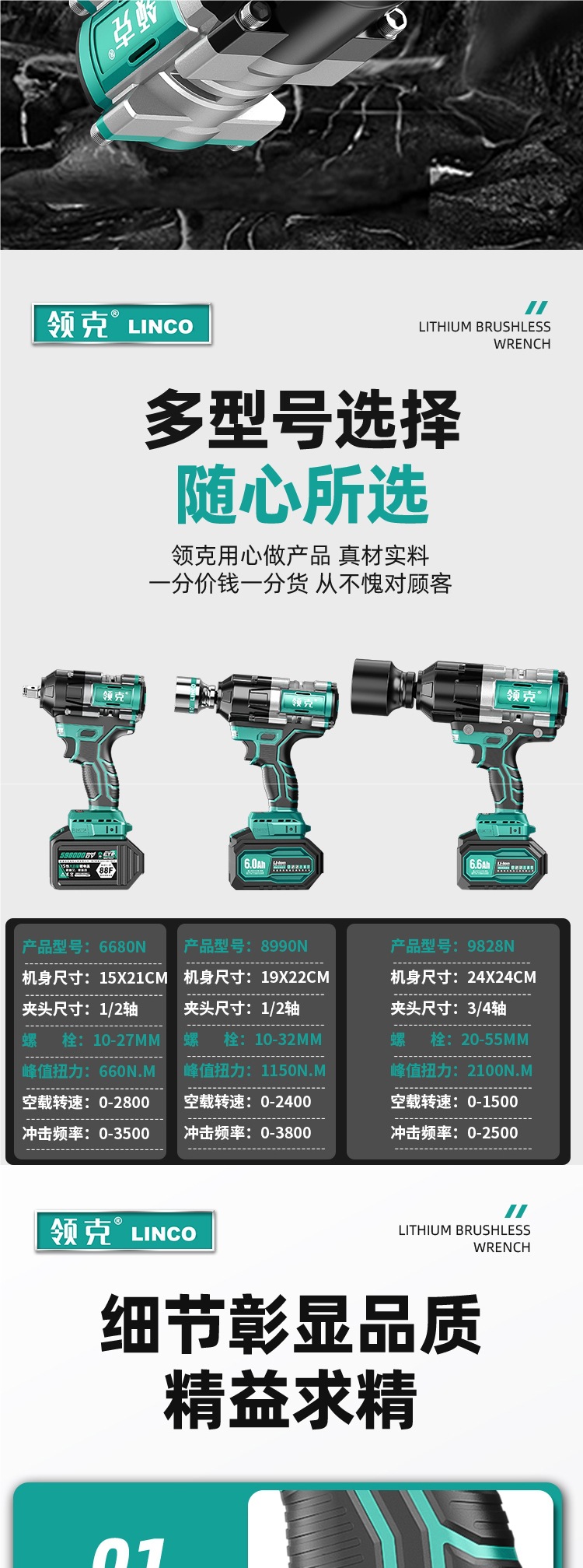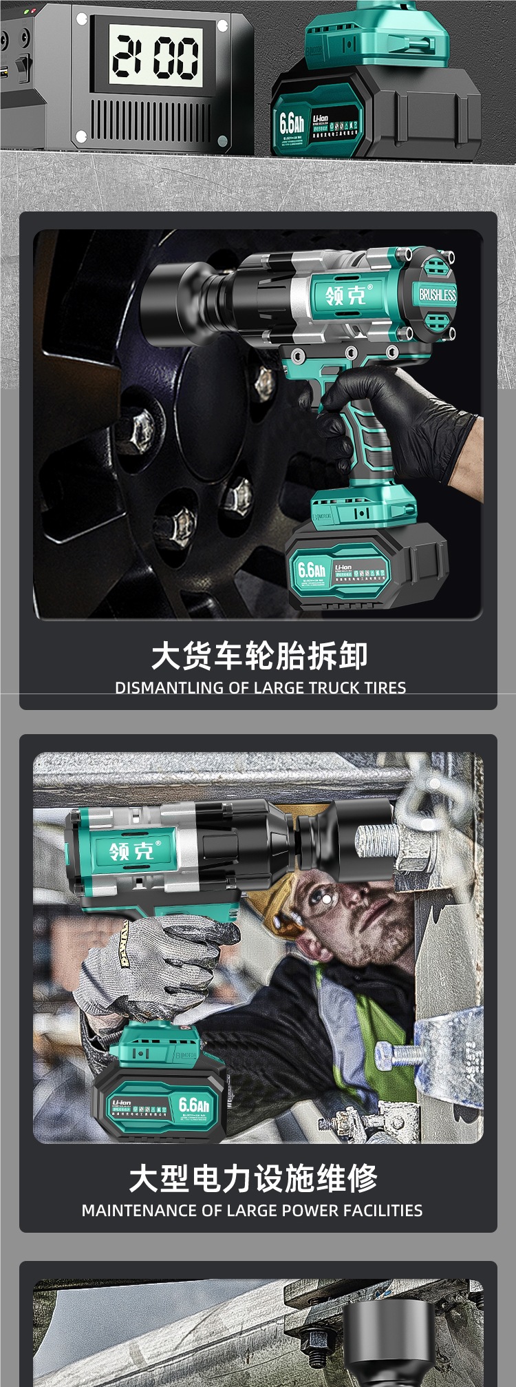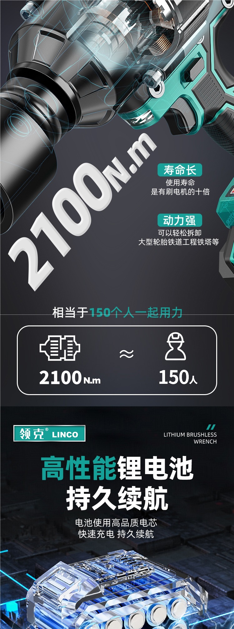 Lingke 오버로드 렌치 자동차 수리 타워 크레인 브러시리스 리튬 배터리 멈출 수없는 대형 토크 전기 렌치 특수 에어 건