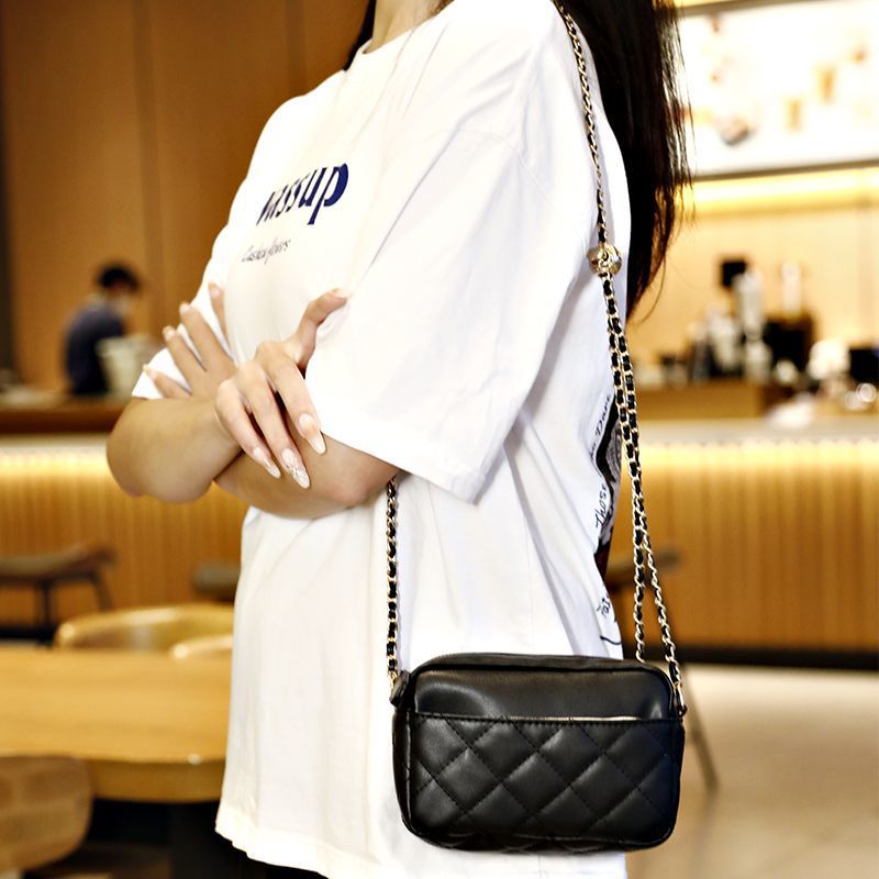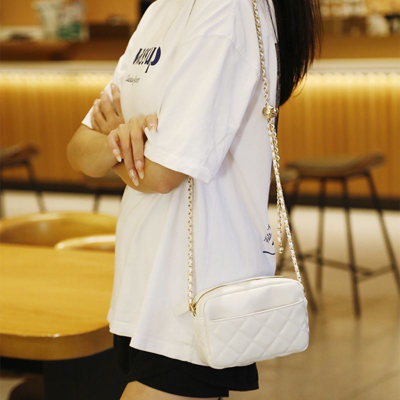 여자 가방 2025 여름 새로운 스타일 향기로운 스타일 작은 광장 가방 모든 경기 크로스 바디 백 다이아몬드 격자 무늬 유행 골드 볼 체인 단일 어깨 휴대 전화 가방스토어 가기