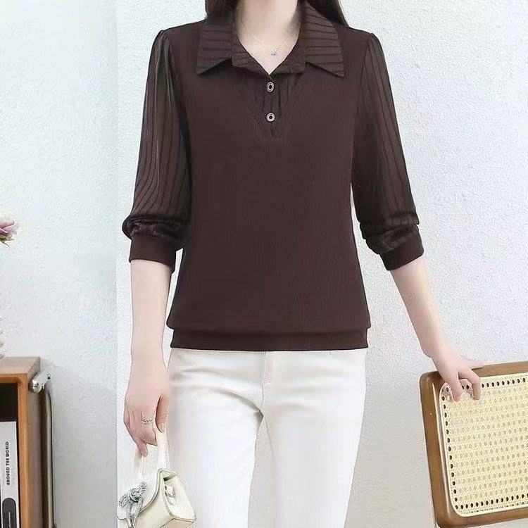 외국 스타일의 바지 셔츠 티셔츠 여성 2025 봄 레트로 조커 탑을 덮는 새로운 스티칭 슬림 배꼽스토어 가기
