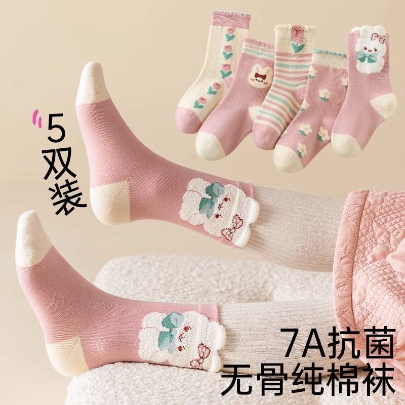 소녀 양말 코튼 양말 봄과 가을 중간 튜브 귀여운 만화 토끼 공주 레이스 가을과 겨울 어린이 코튼 소녀 아기스토어 가기