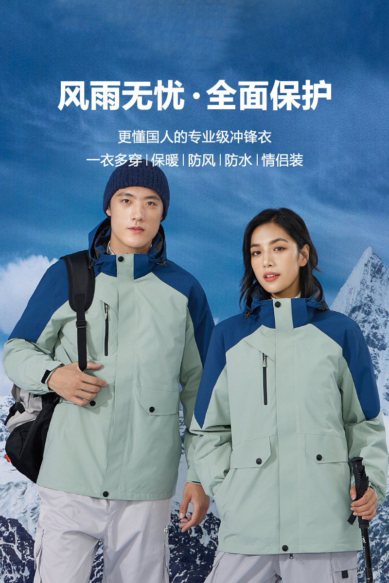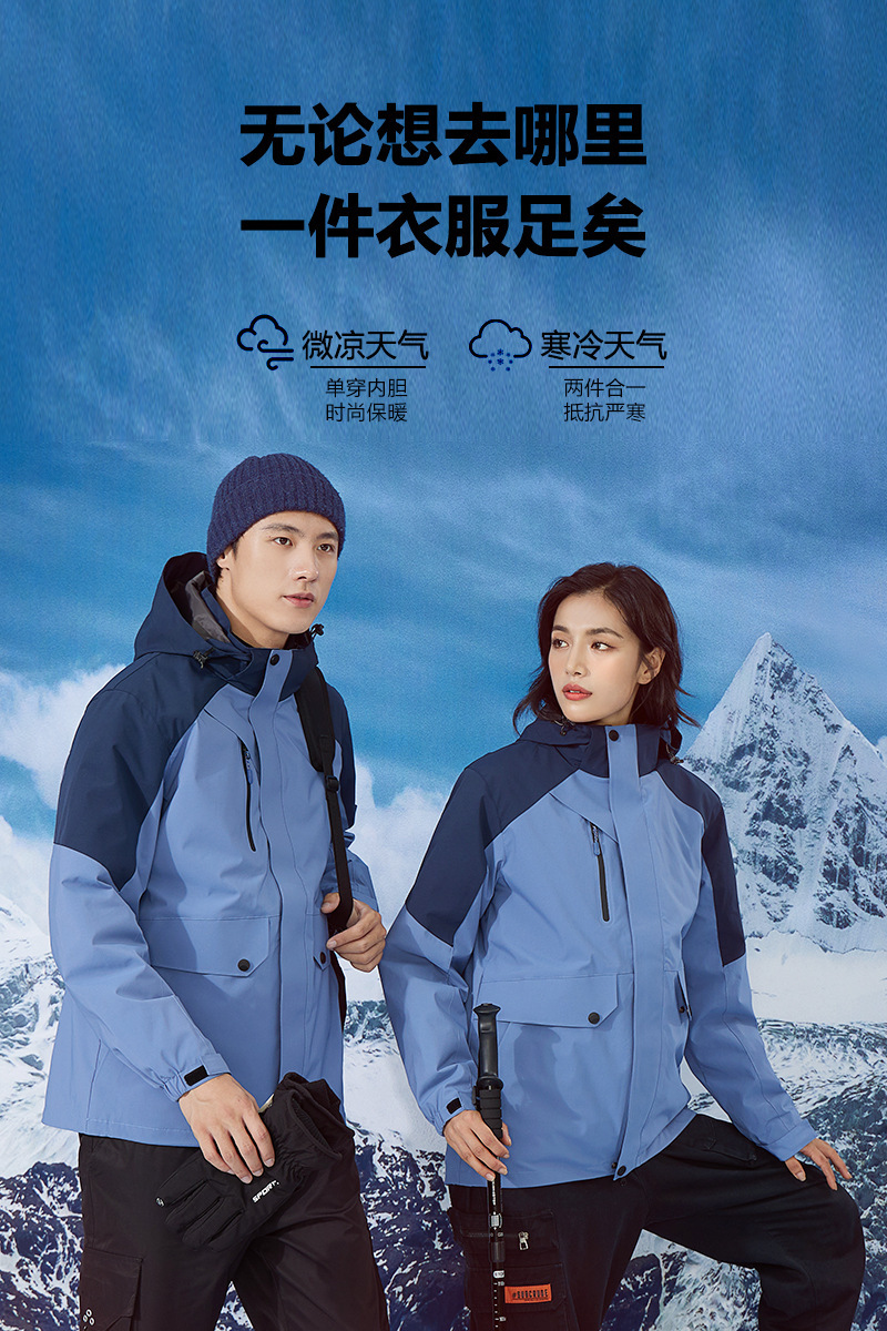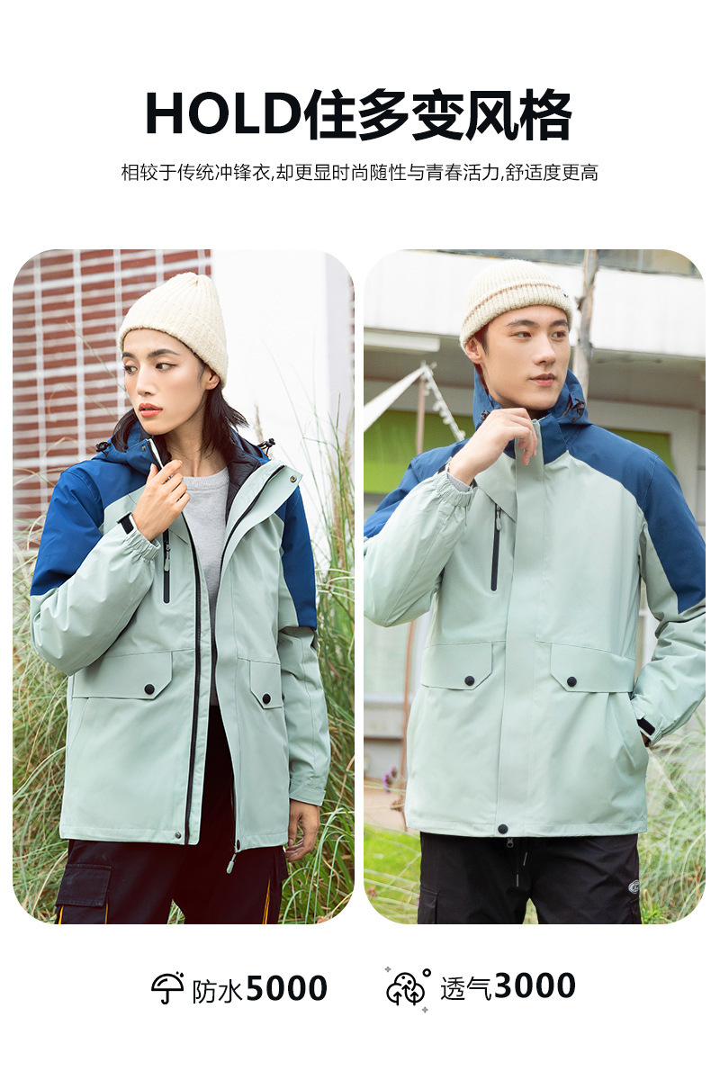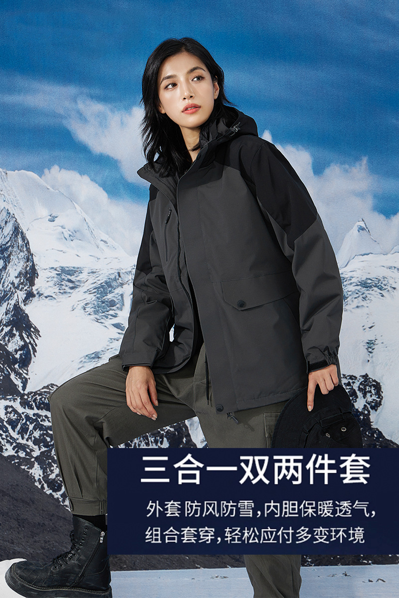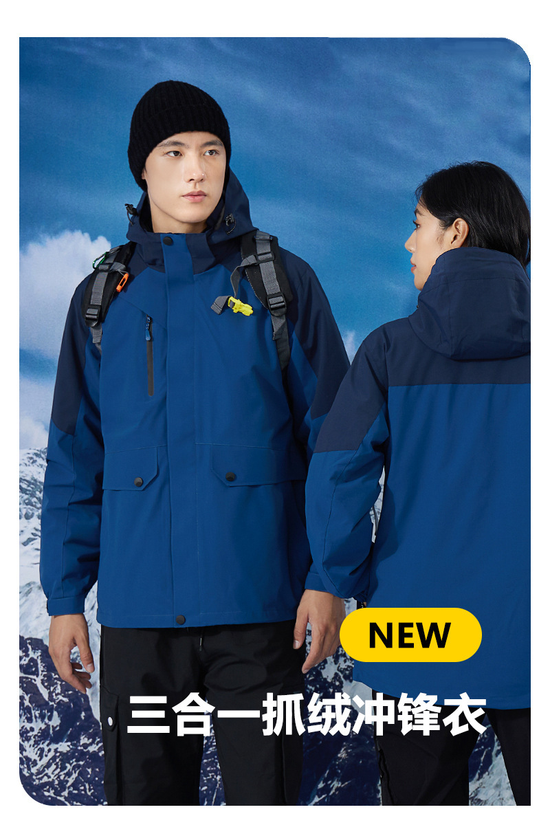 潮牌(现货摇粒绒内胆)三合一冲锋衣户外登山旅行可logo