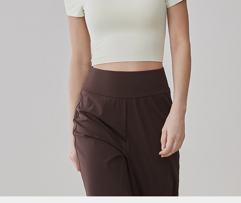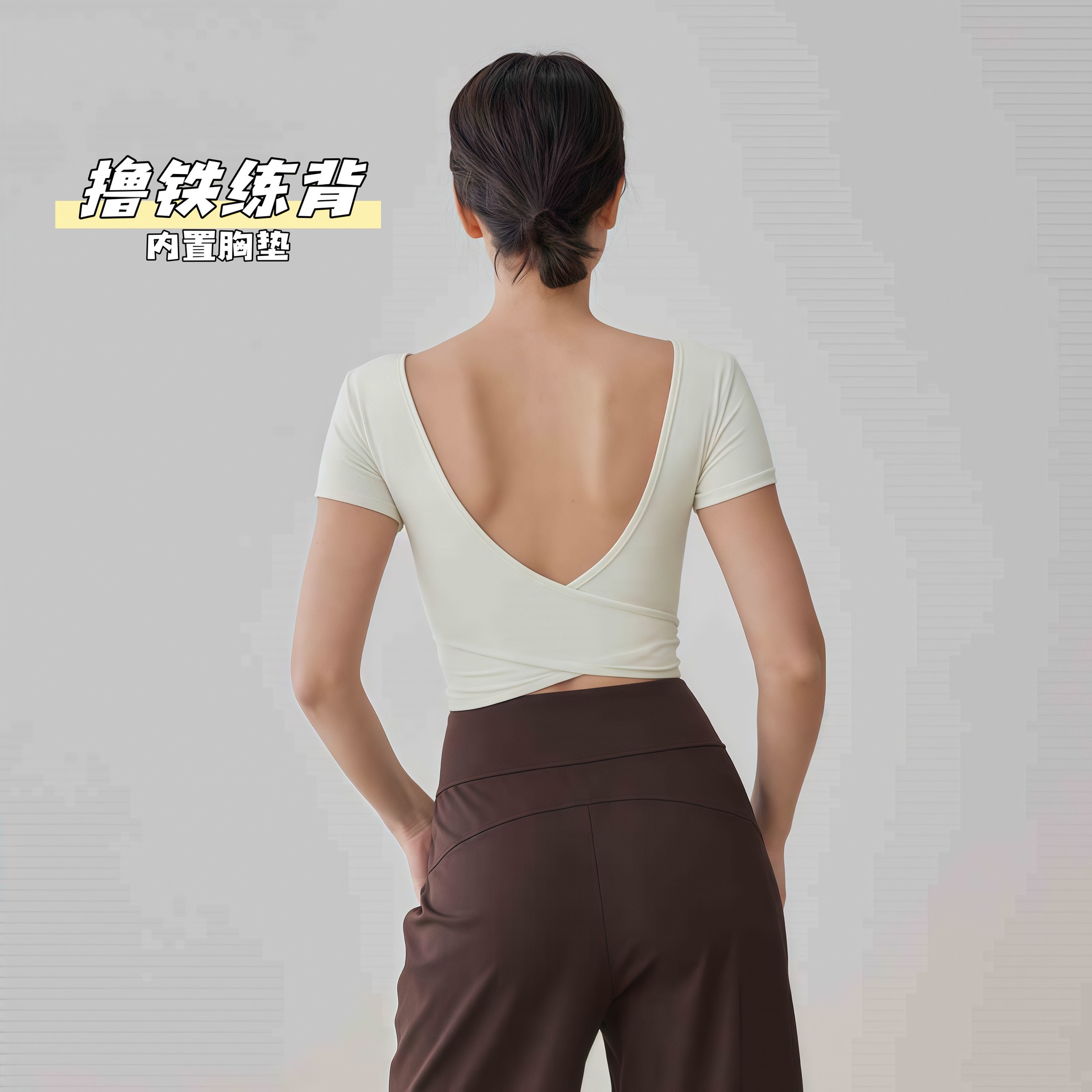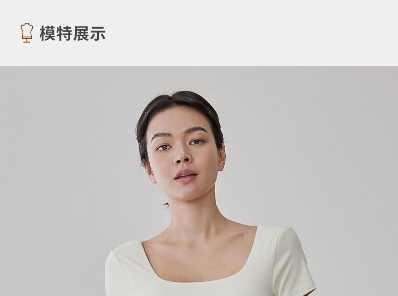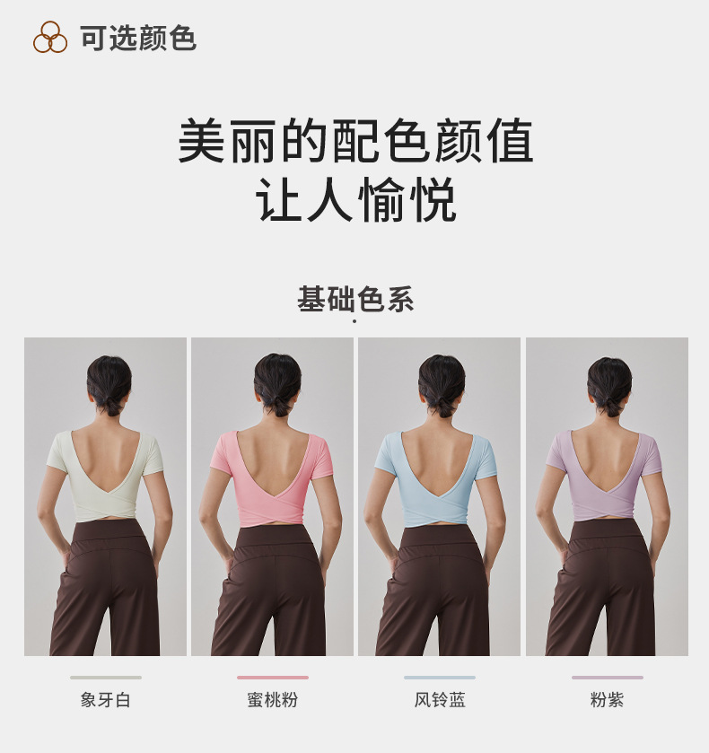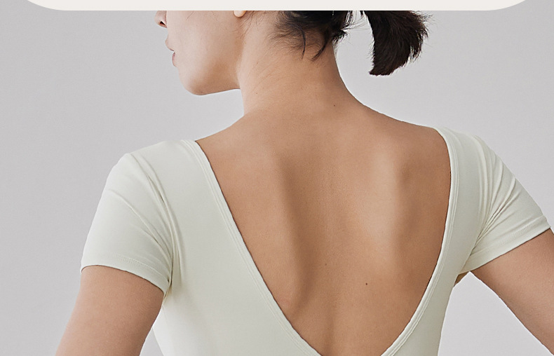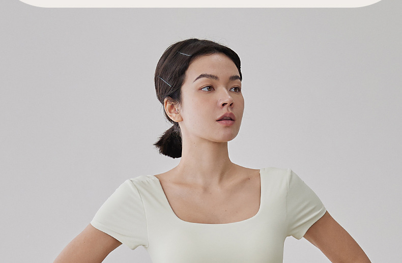 가슴 패드 반팔 티셔츠를 입은 국경 간 프렌치 스퀘어 칼라 요가 의류 슬림 핏 V 백 피트니스 아이언 압연 탑 필라테