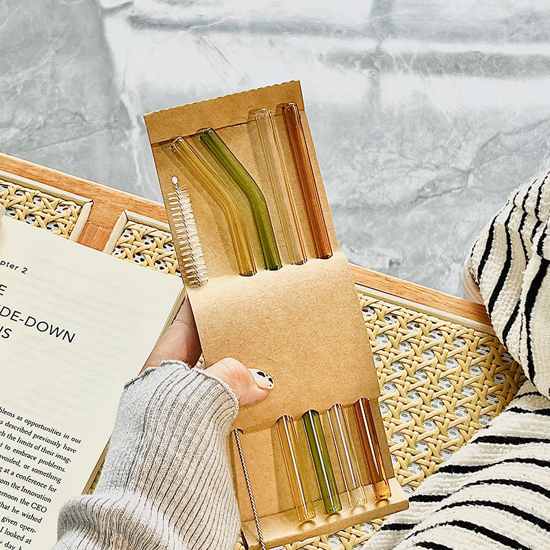 일회용 컬러 유리 빨대 높은 색상 값 높은 borosilicate 고온 내성 식품 등급 우유 차 확장 마시는 튜브스토어 가기