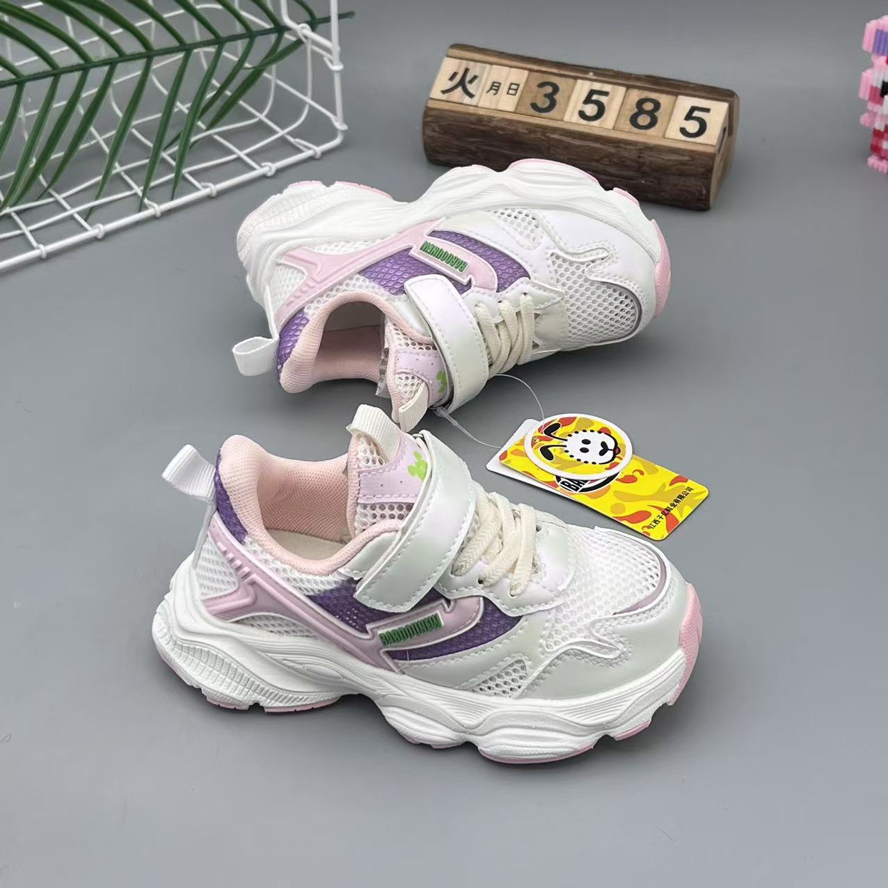 2025 년 봄과 여름 새로운 캐주얼 어린이 신발을 통해 싱글 네트를 운동화 남학생과 여학생을위한 후크와 루프가있는 초경량 패치 밑창 어린이 신발