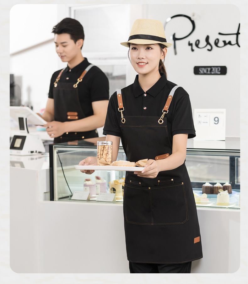방수 캔버스 앞치마 맞춤 로고 인쇄 우유 차 가게 바리 스타 웨이터 허리 작업복