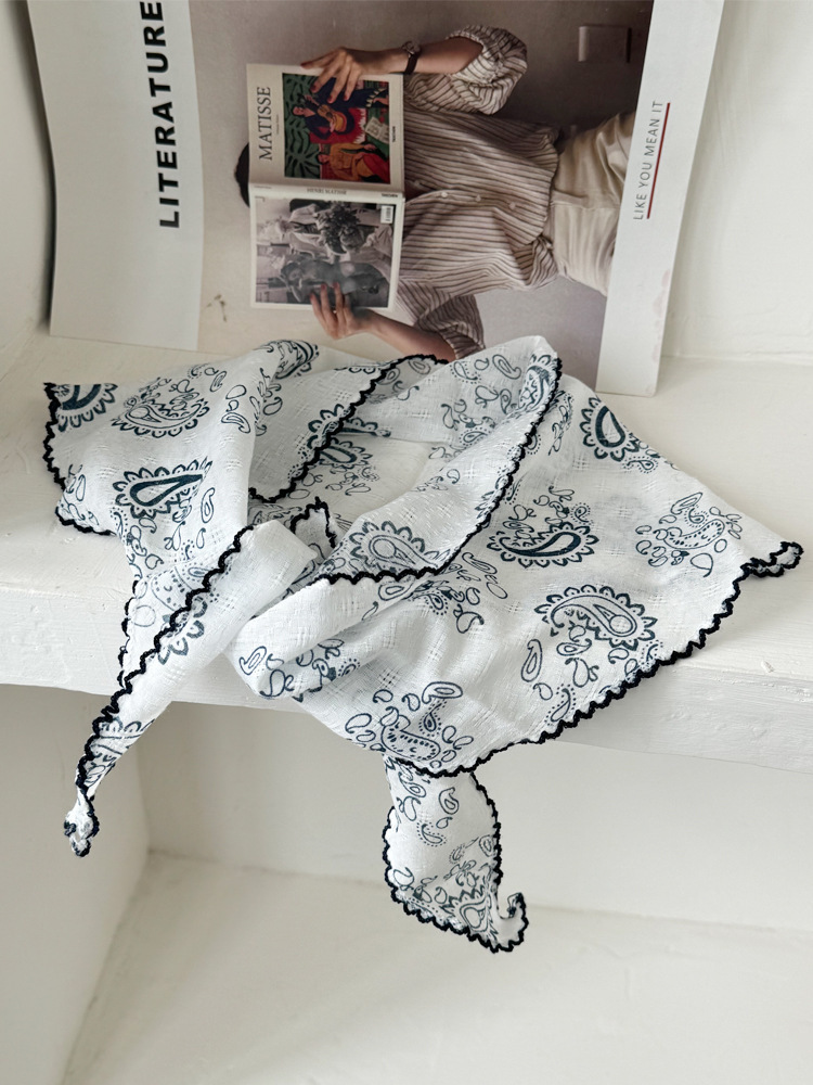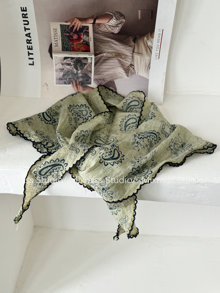 달콤한 차 소녀! 삼각형 스카프 한국 스타일 모리 스타일 스카프 초박형 봄과 여름 Ins 스타일 삼각형 코튼 리넨 스카프
