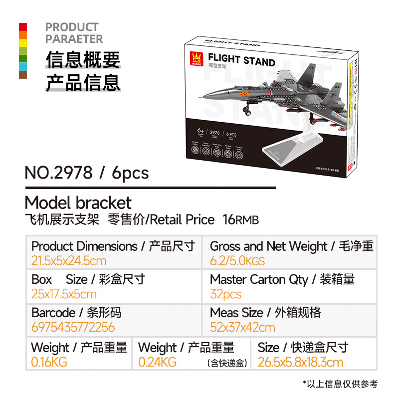 • 2978 브래킷만 해당되며 항공기 모델은 별도로 구매해야 합니다.