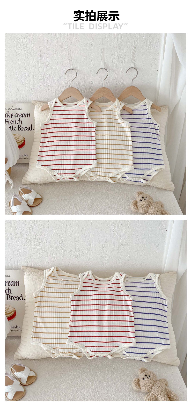 여름 신생아 조끼 점프 수트 한국 민소매 줄무늬 점프 수트 아기 소년과 소녀 아기 봉투 풀오버 얇은스토어 가기