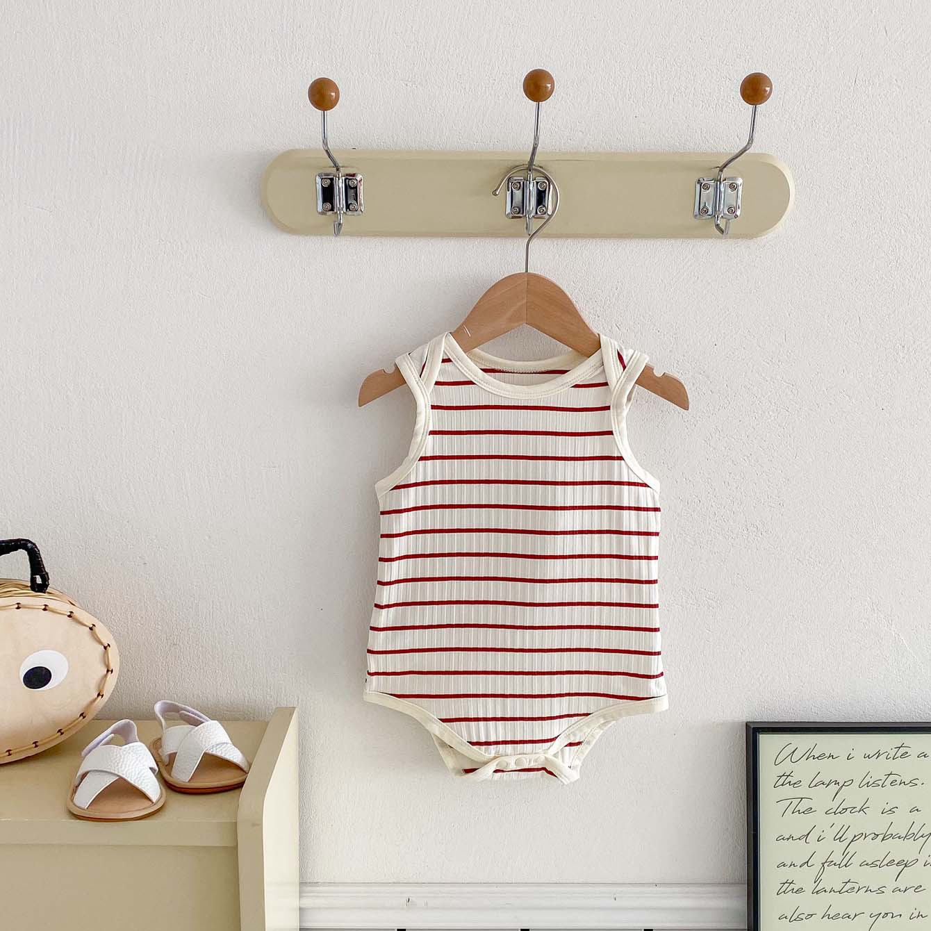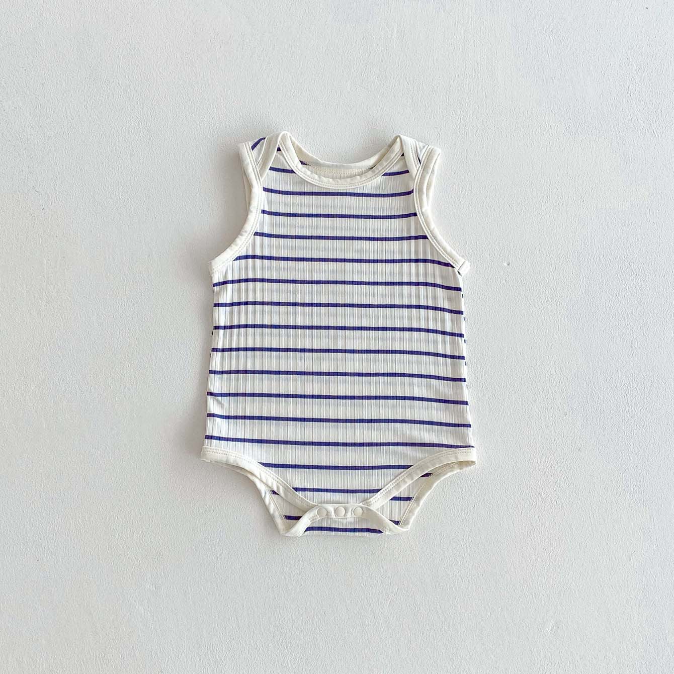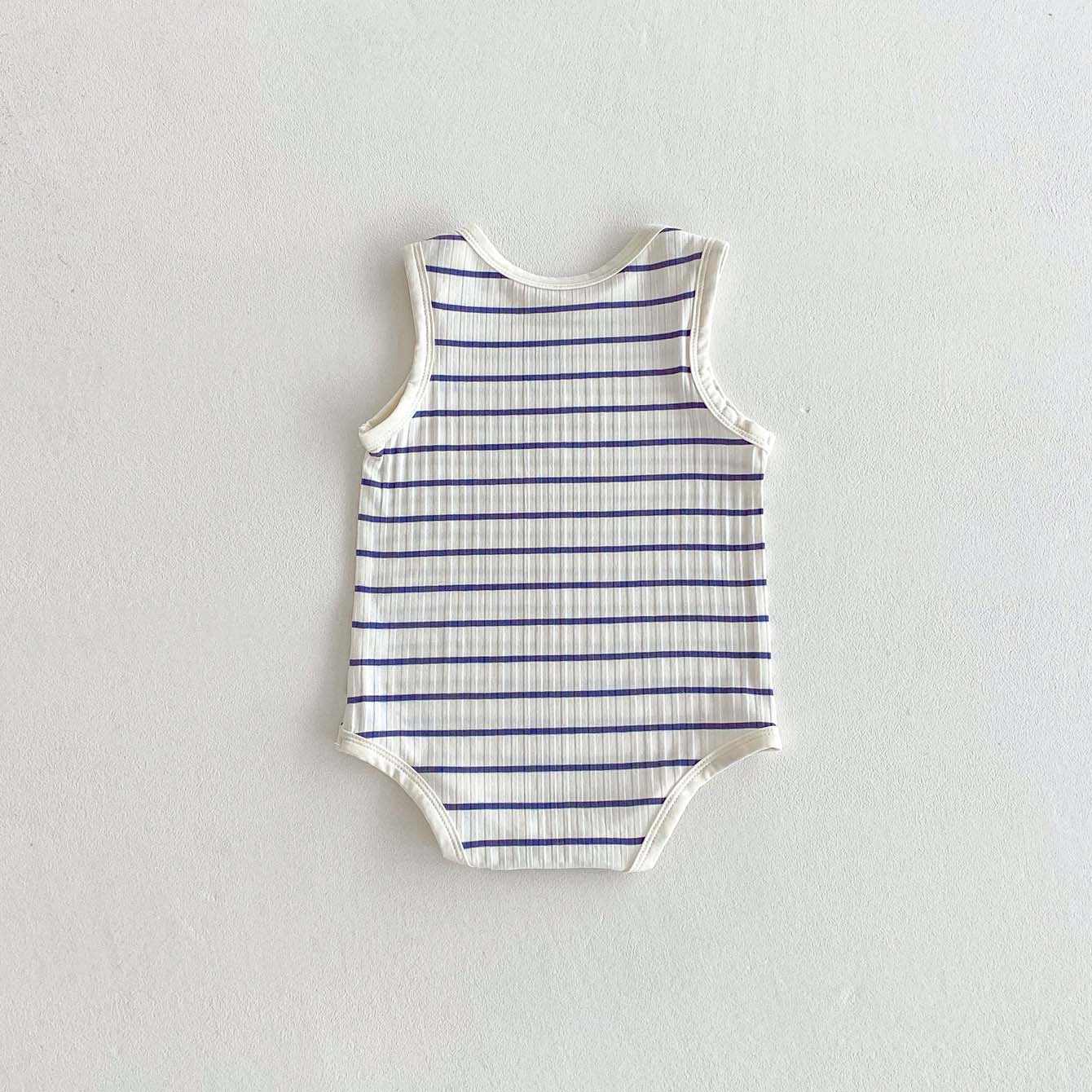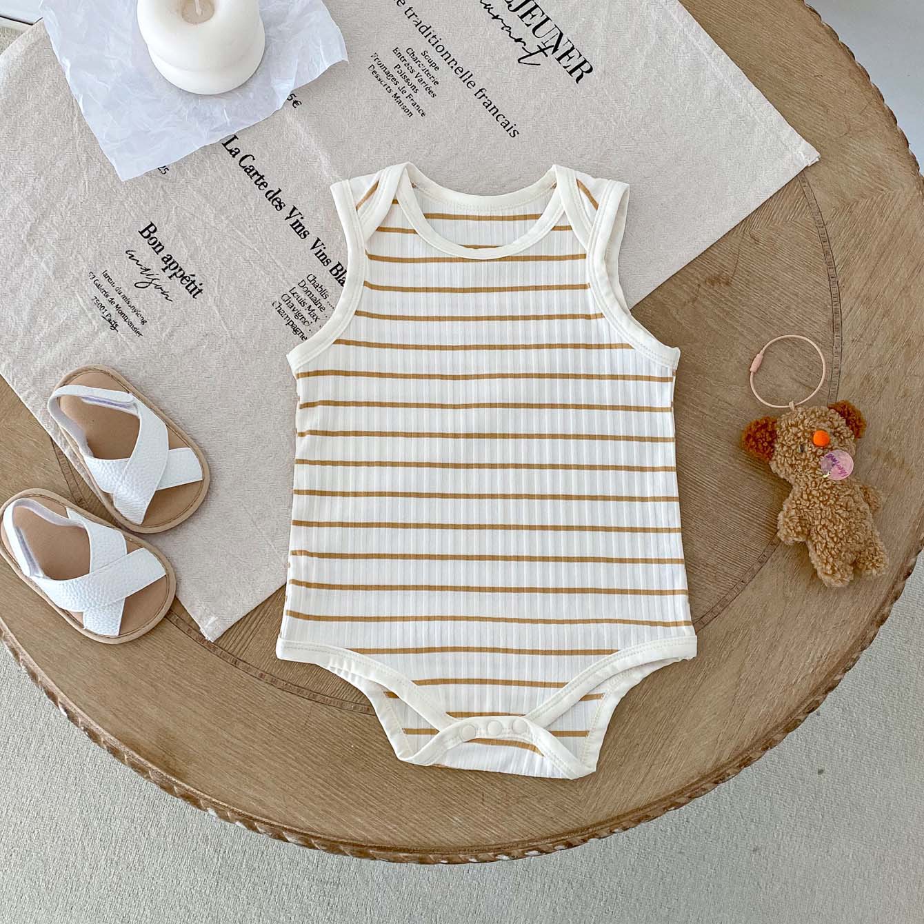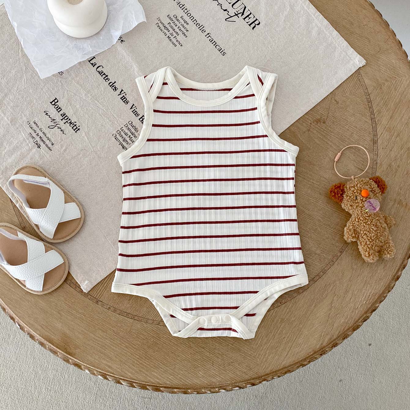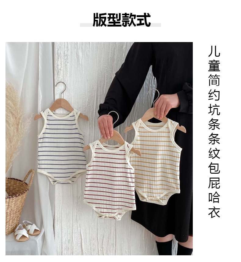 여름 신생아 조끼 점프 수트 한국 민소매 줄무늬 점프 수트 아기 소년과 소녀 아기 봉투 풀오버 얇은