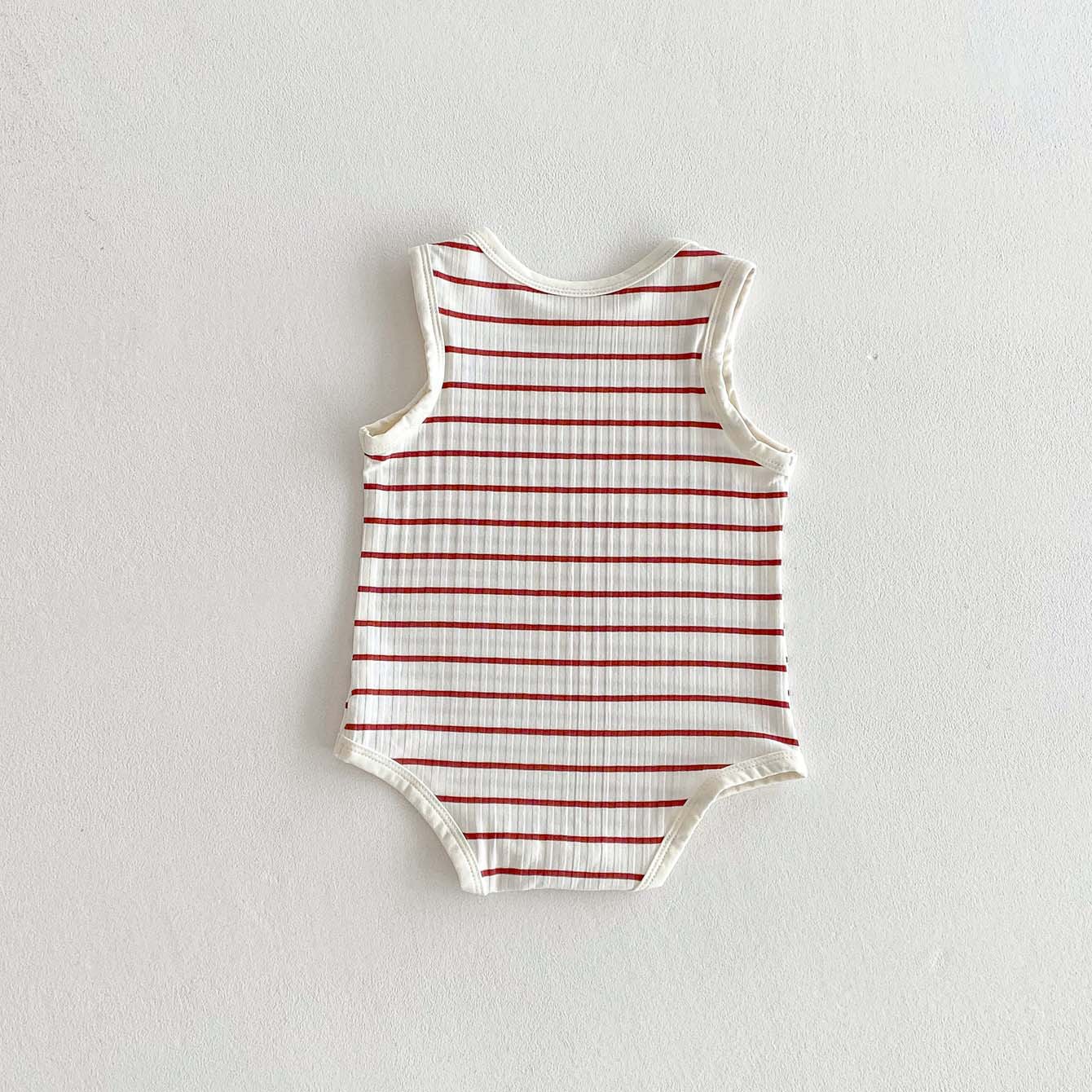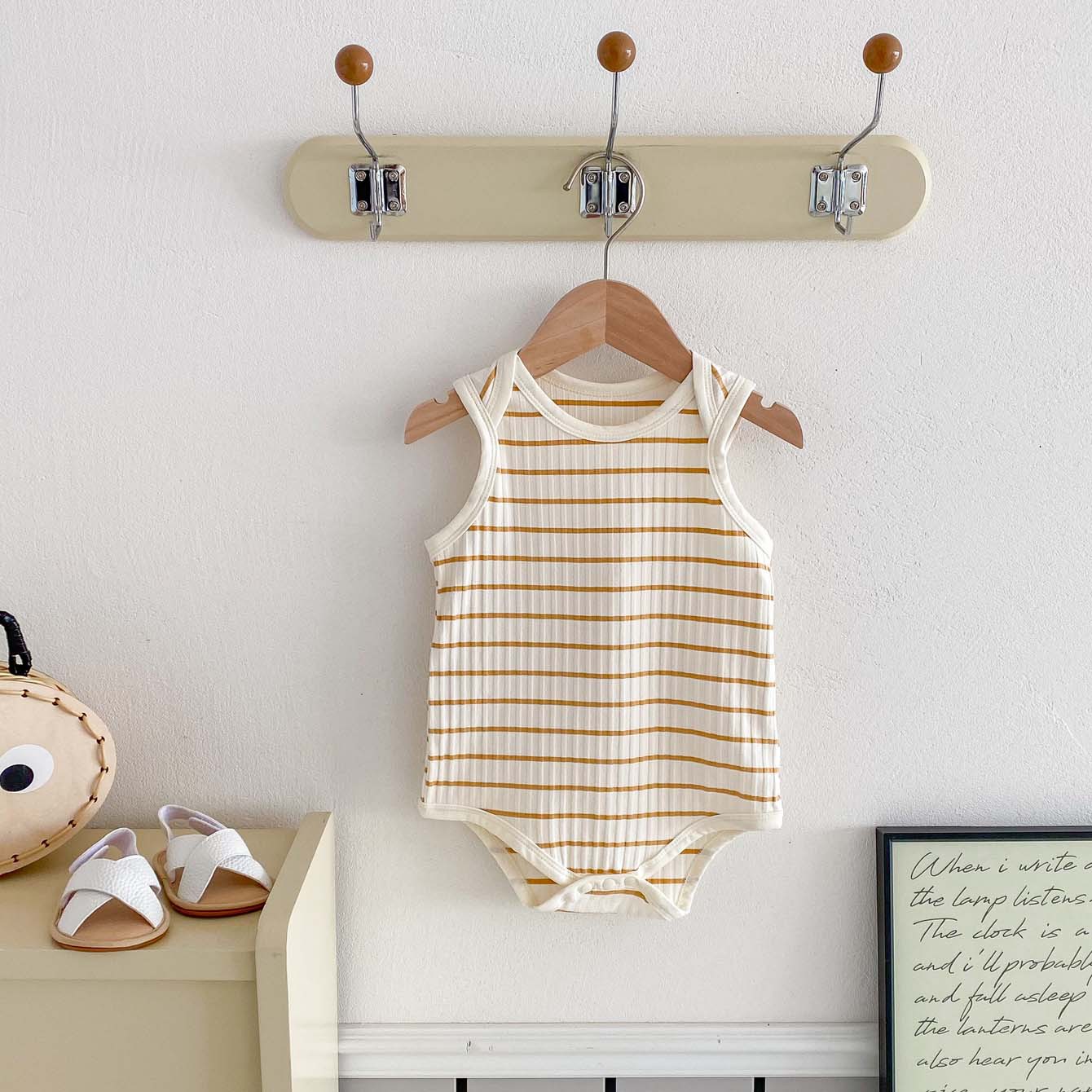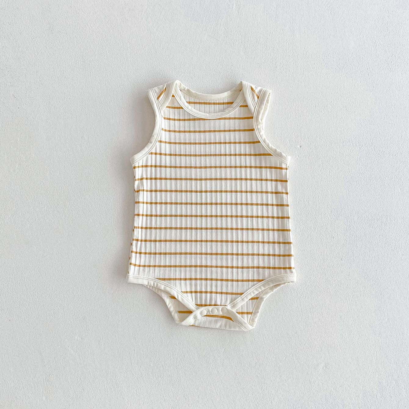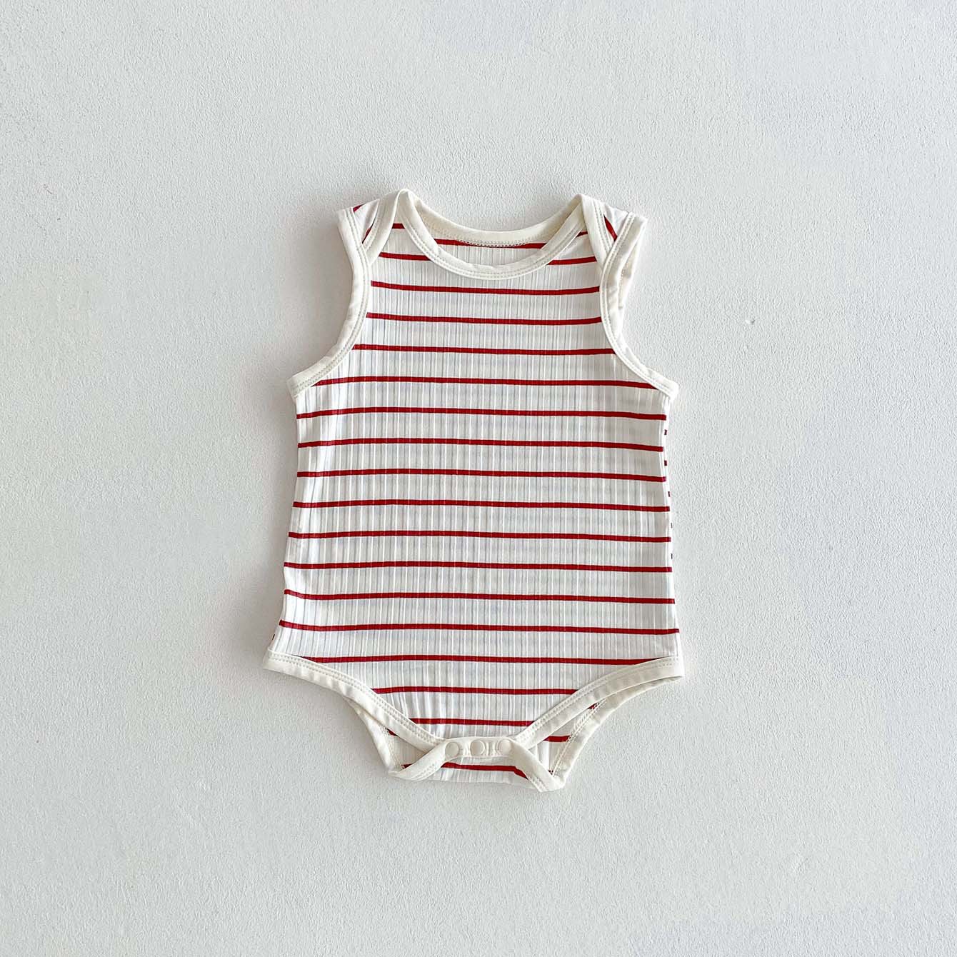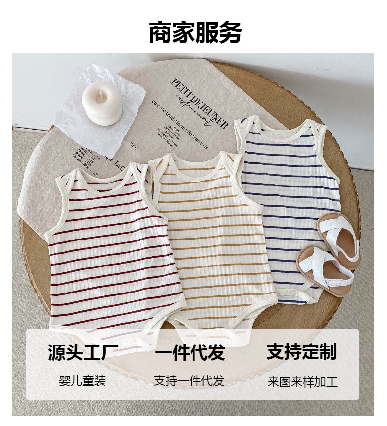 여름 신생아 조끼 점프 수트 한국 민소매 줄무늬 점프 수트 아기 소년과 소녀 아기 봉투 풀오버 얇은
