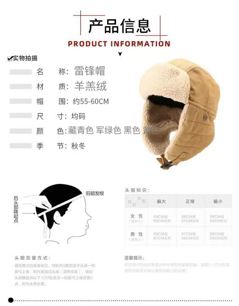남녀공용 겨울용 보온 레이펑 모자, 귀덮개, 동북 지역 자전거용 방한모, 추운 날씨용 모자, 달콤하고 시원한 스타일스토어 가기