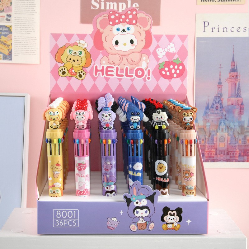 국경 만화 10 색 펜 대외 무역 인형 멀티 컬러 펜 높은 가치 볼펜 멀티 컬러 펜 학생 문구 공급