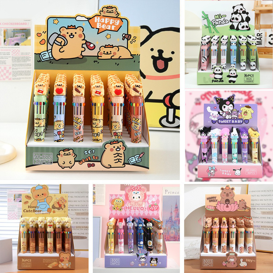 국경 만화 10 색 펜 대외 무역 인형 멀티 컬러 펜 높은 가치 볼펜 멀티 컬러 펜 학생 문구 공급스토어 가기