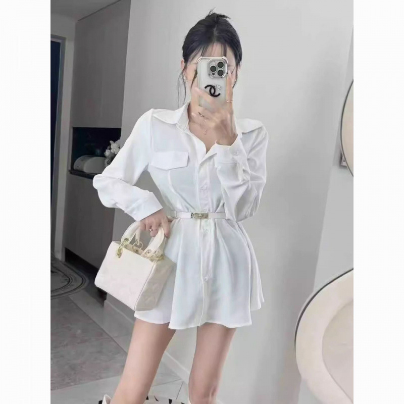 한국 기질 허리 폴로 칼라 긴 소매 셔츠 원피스 여성 2025 이른 봄 슬림 적합
