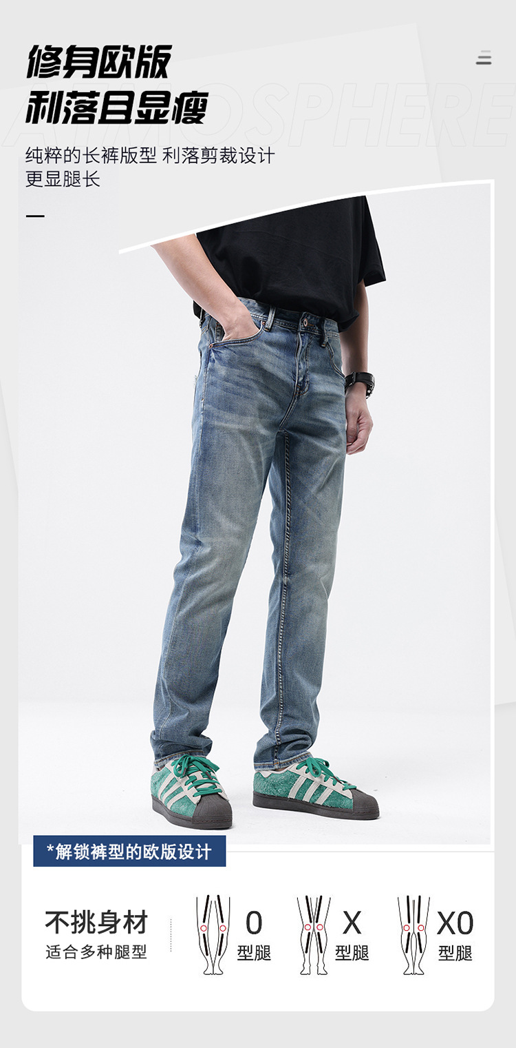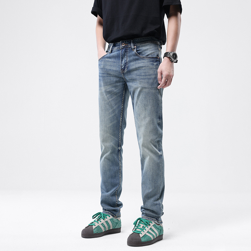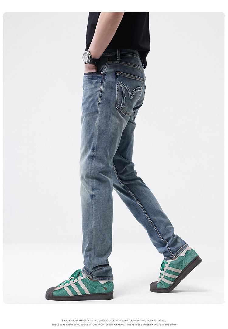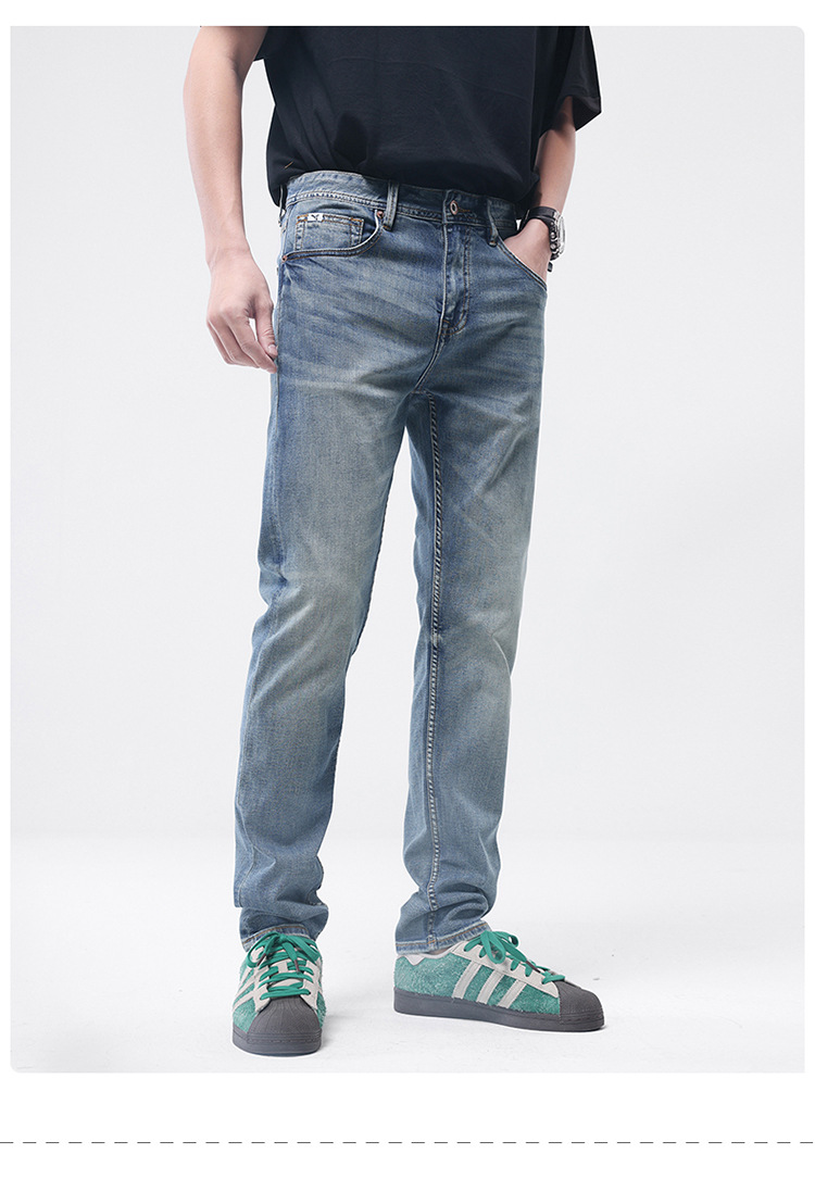 유럽과 미국의 하이 엔드 트렌디 브랜드 고품질 청바지 남성용 스트레이트 슬림 핏 트렌디 올 매치 스킨 친화적 인 소프트 핸섬 바지스토어 가기