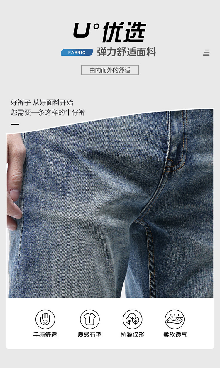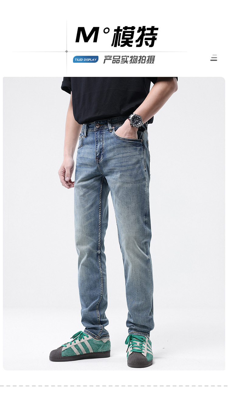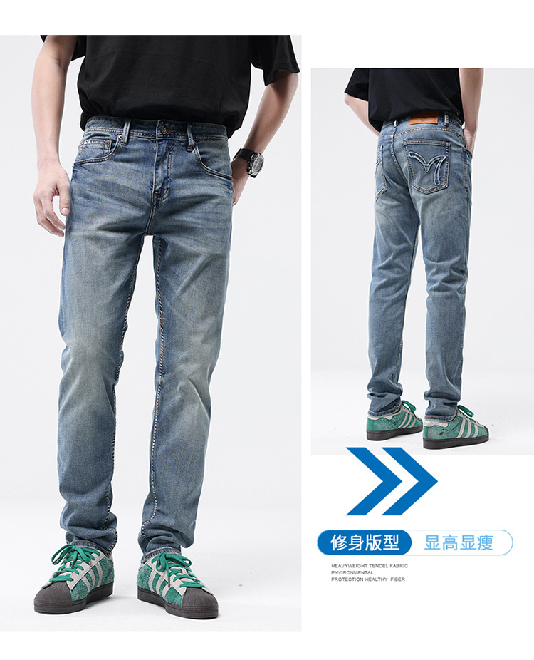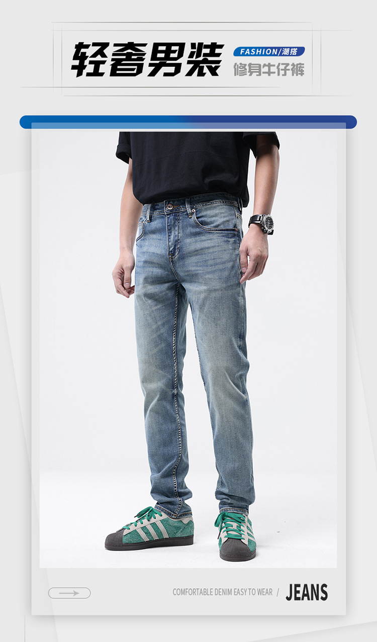 유럽과 미국의 하이 엔드 트렌디 브랜드 고품질 청바지 남성용 스트레이트 슬림 핏 트렌디 올 매치 스킨 친화적 인 소프트 핸섬 바지스토어 가기