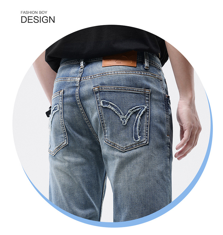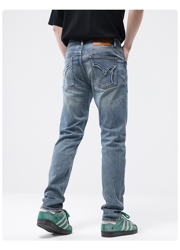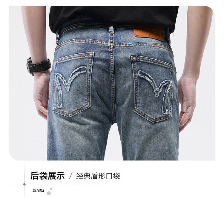 유럽과 미국의 하이 엔드 트렌디 브랜드 고품질 청바지 남성용 스트레이트 슬림 핏 트렌디 올 매치 스킨 친화적 인 소프트 핸섬 바지