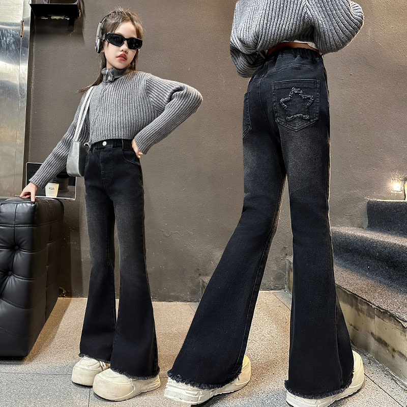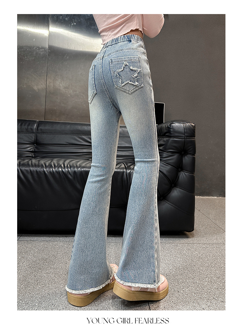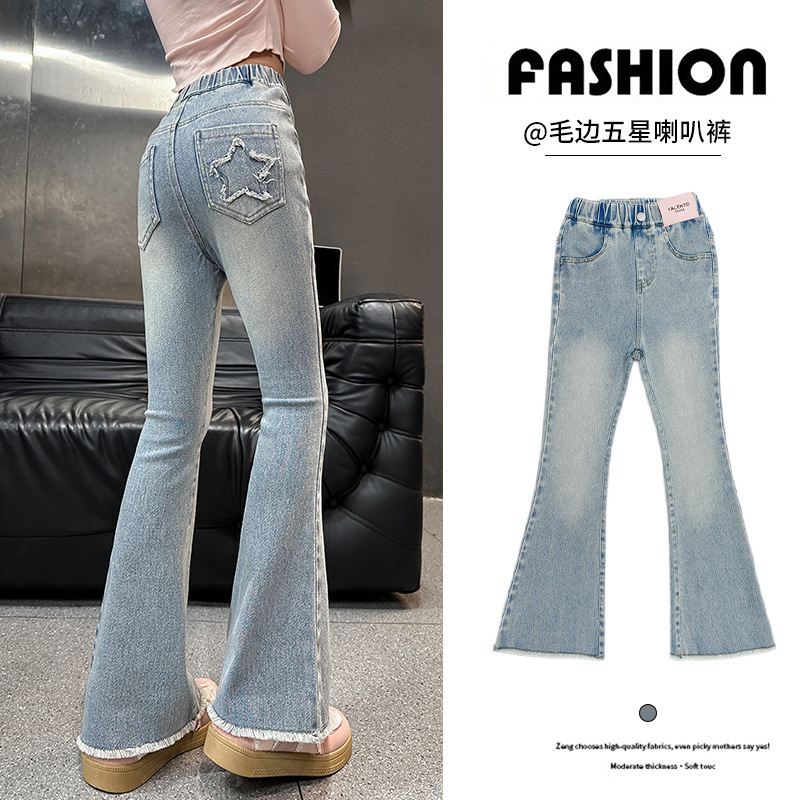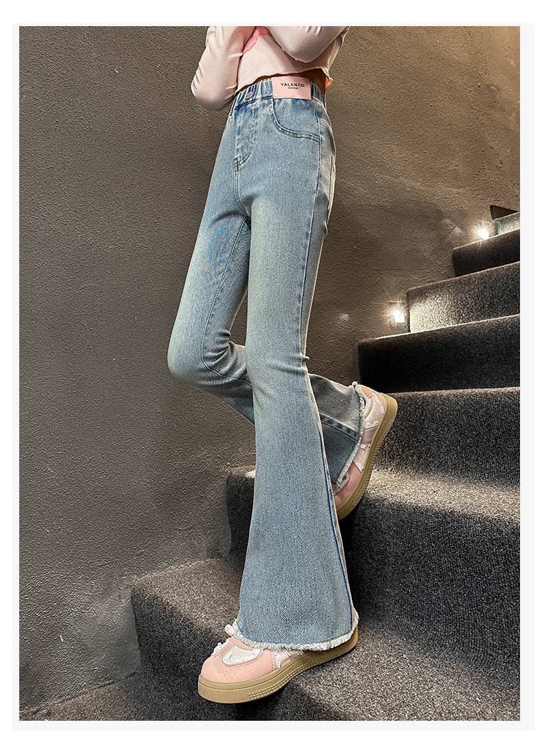 여자 엘라스트 바지 봄과 가을 2025 새로운 어린이 바지 중학생을위한 봄 소녀 마이크로 라 청바지