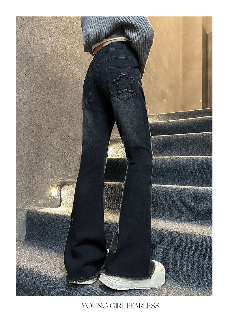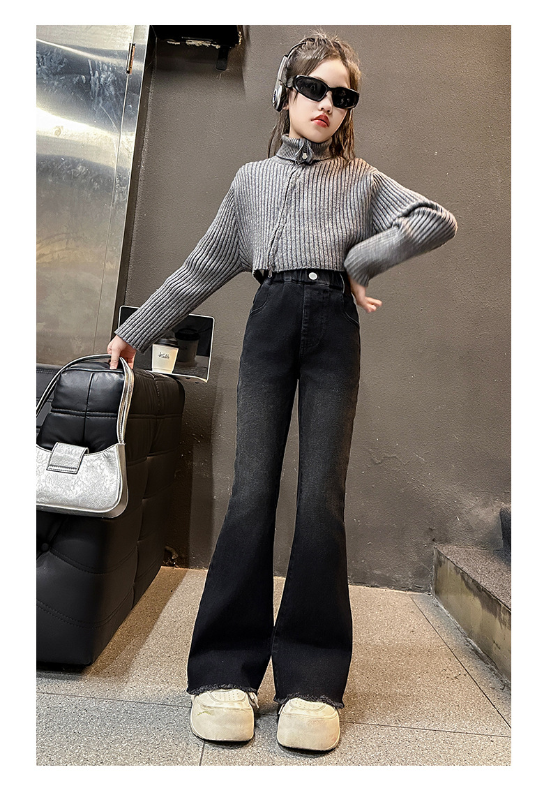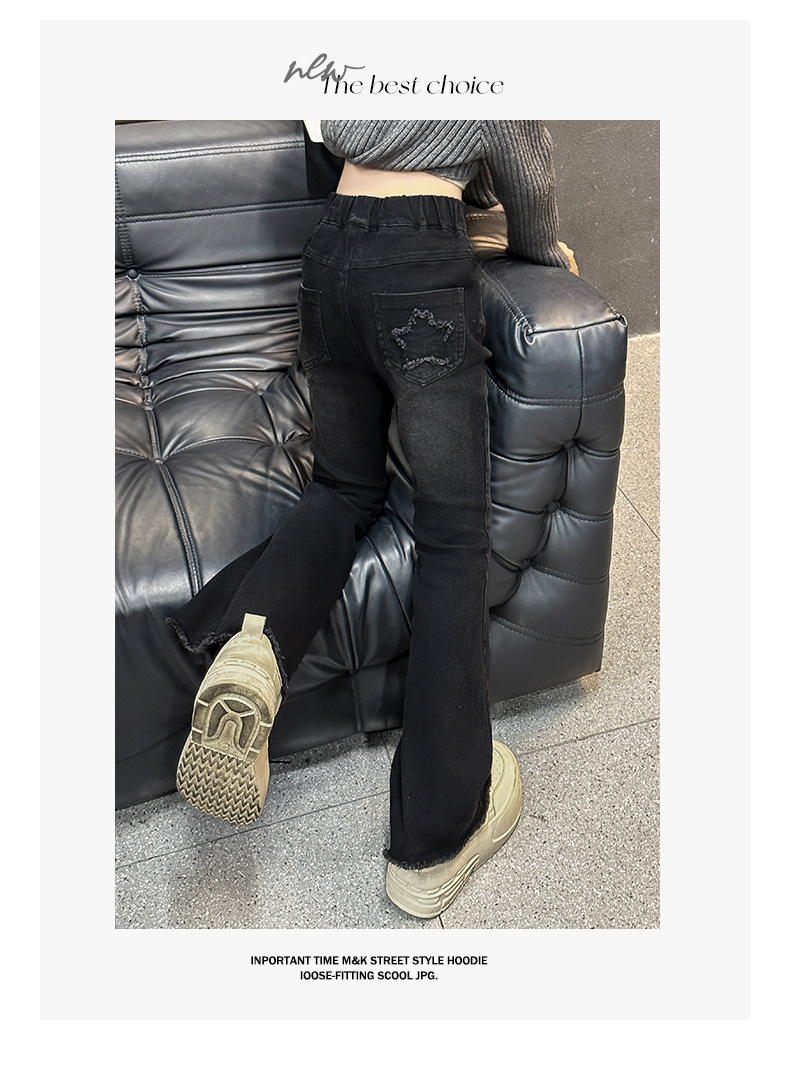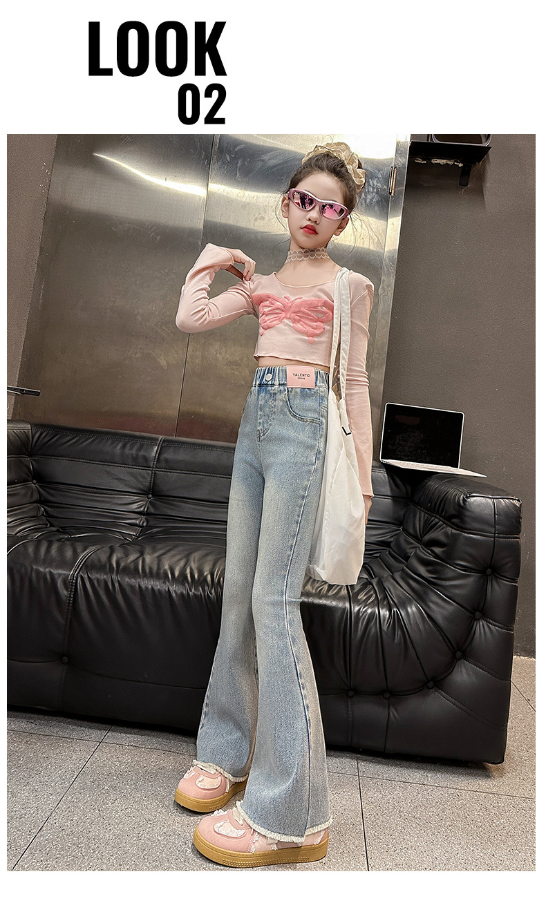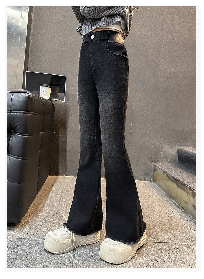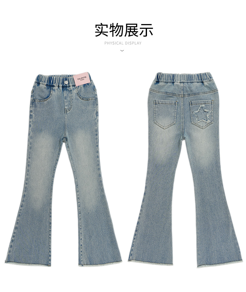 여자 엘라스트 바지 봄과 가을 2025 새로운 어린이 바지 중학생을위한 봄 소녀 마이크로 라 청바지스토어 가기