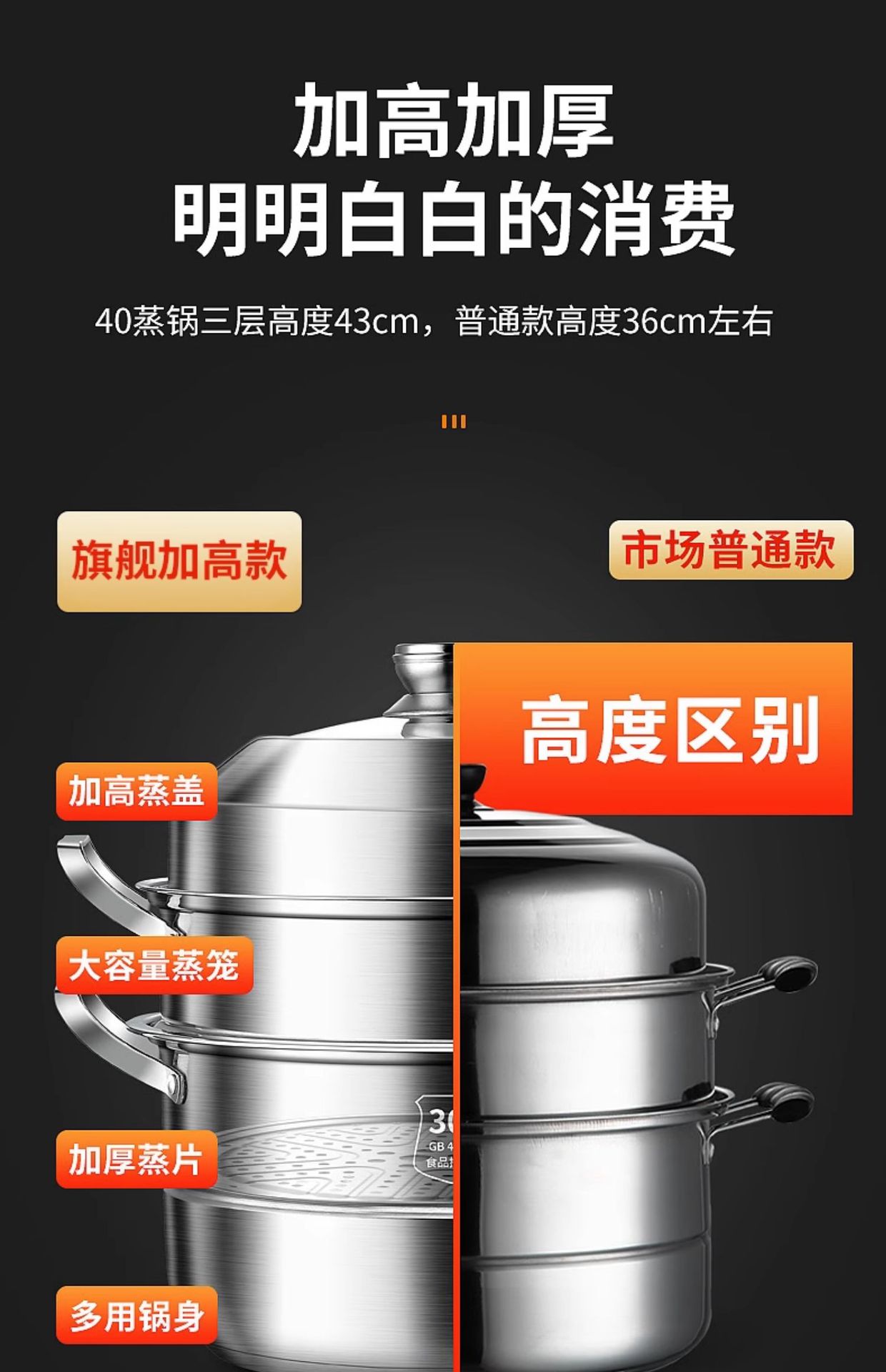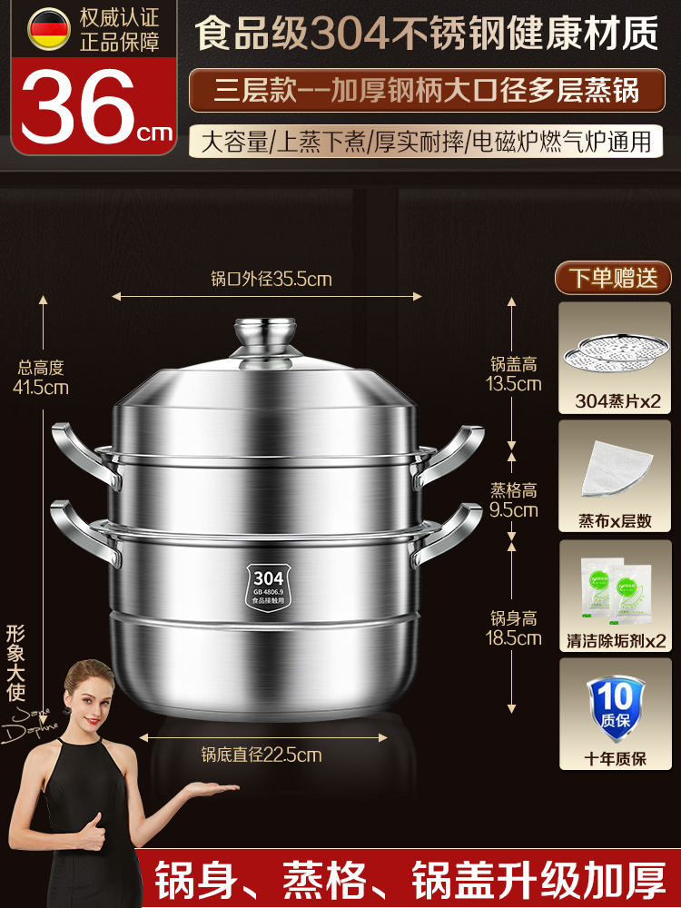 • [두꺼운 304 스테인리스] 찜기 36CM 3단