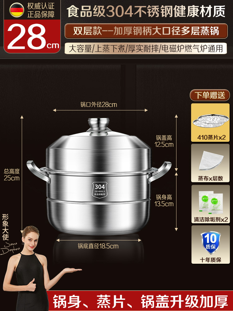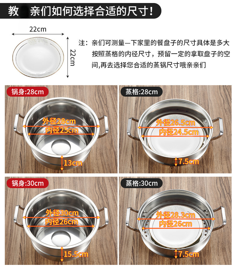 • [두꺼운 304 스테인레스 스틸❤업그레이드된 304 찜조각] 찜기 28CM 더블 레이어