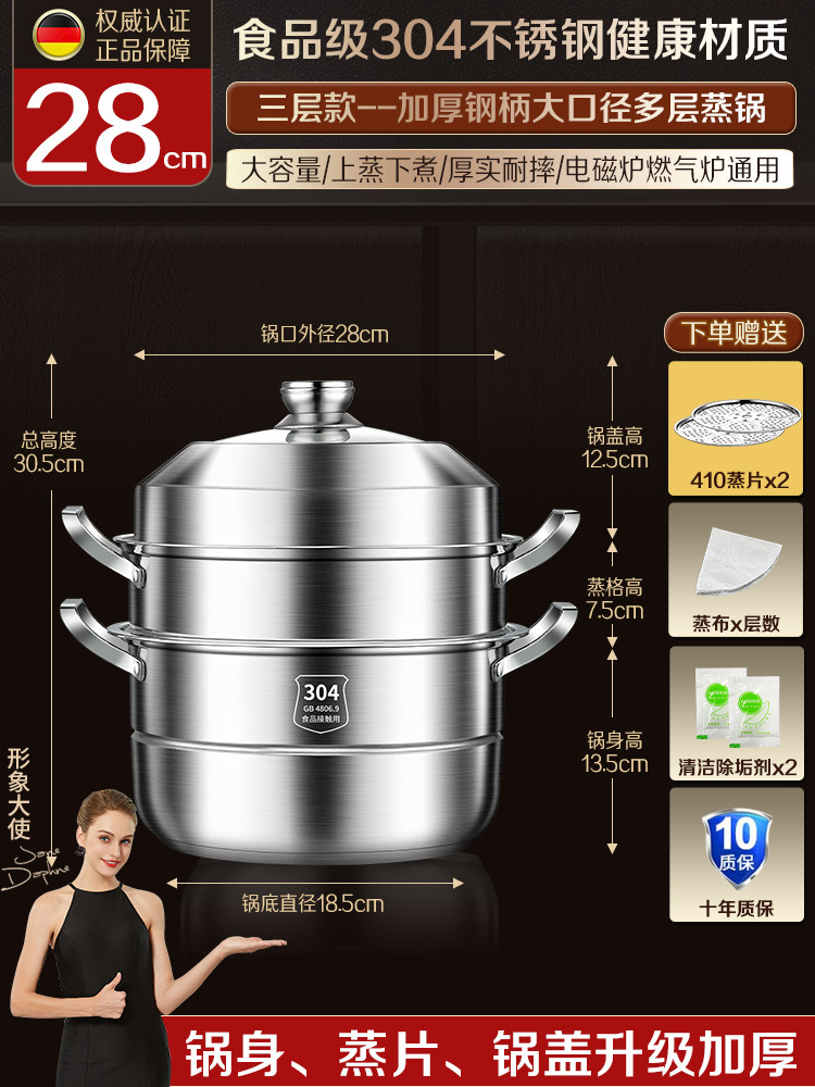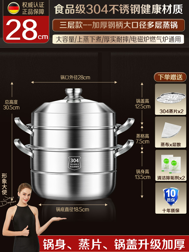 • 두꺼운 식품 등급 304 다기능 증기선❤28CM 4층 플래그십 모델