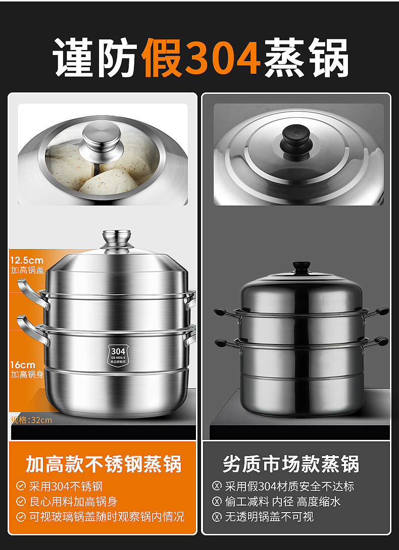 • [두꺼운 304 스테인리스] 찜기 32CM 3단