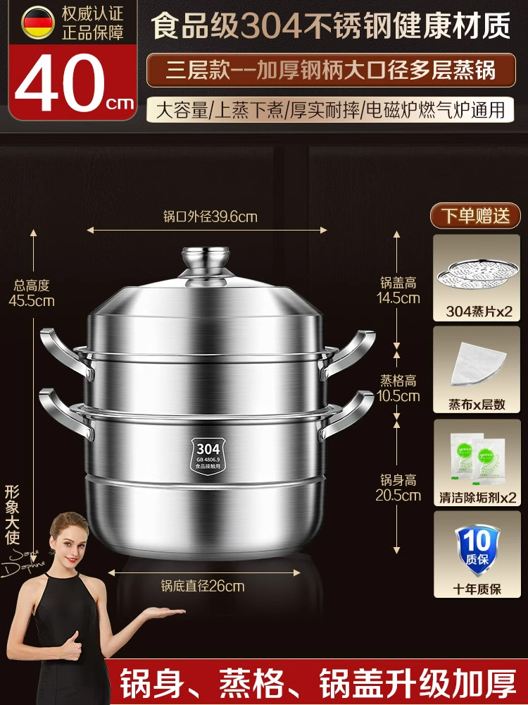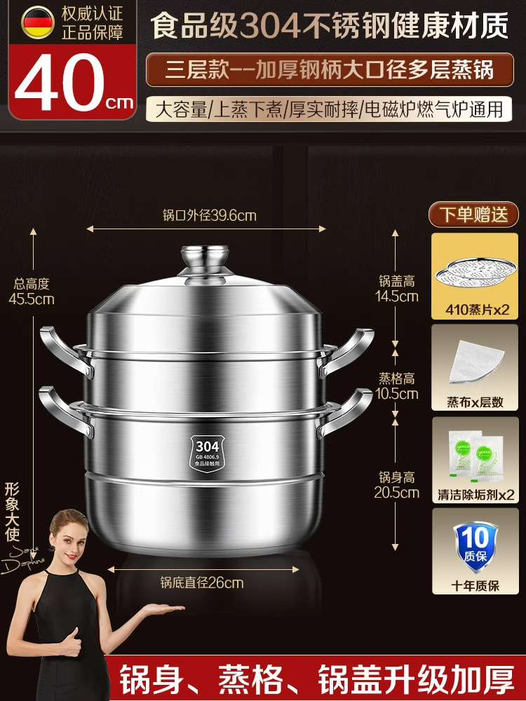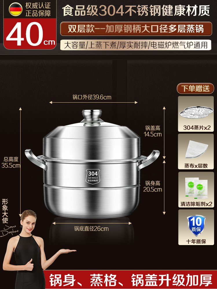 • [두꺼운 304 스테인레스 스틸❤업그레이드된 304 찜조각] 찜기 40CM 더블 레이어