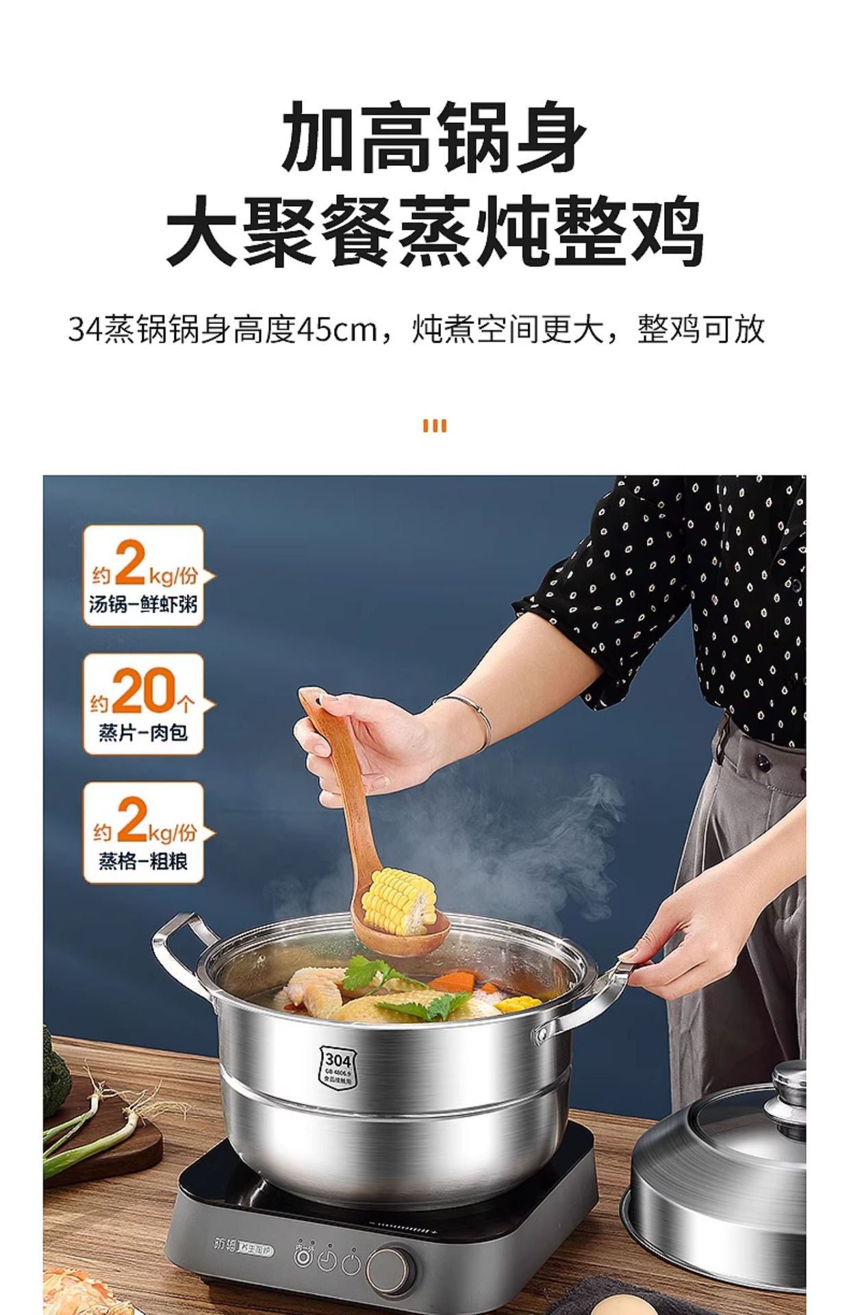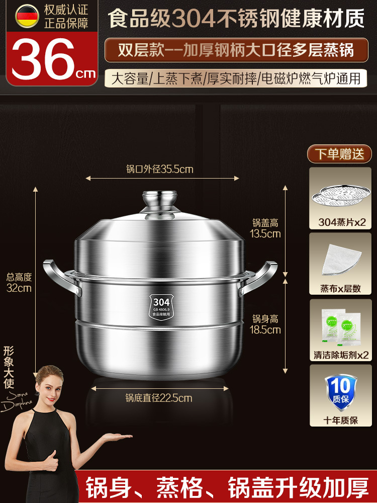 • [두꺼운 304 스테인리스] 찜기 36CM 더블 레이어