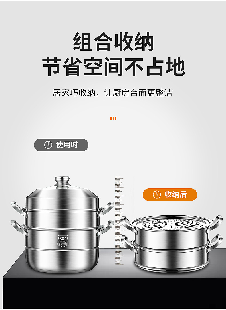 • [두꺼운 304 스테인레스 스틸❤업그레이드된 304 찜조각] 찜기 32CM 3단