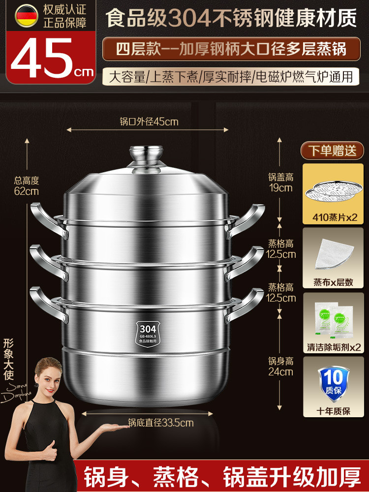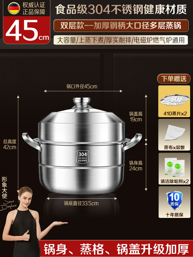 • [두꺼운 304 스테인레스 스틸❤업그레이드된 304 찜조각] 찜기 45CM 더블 레이어